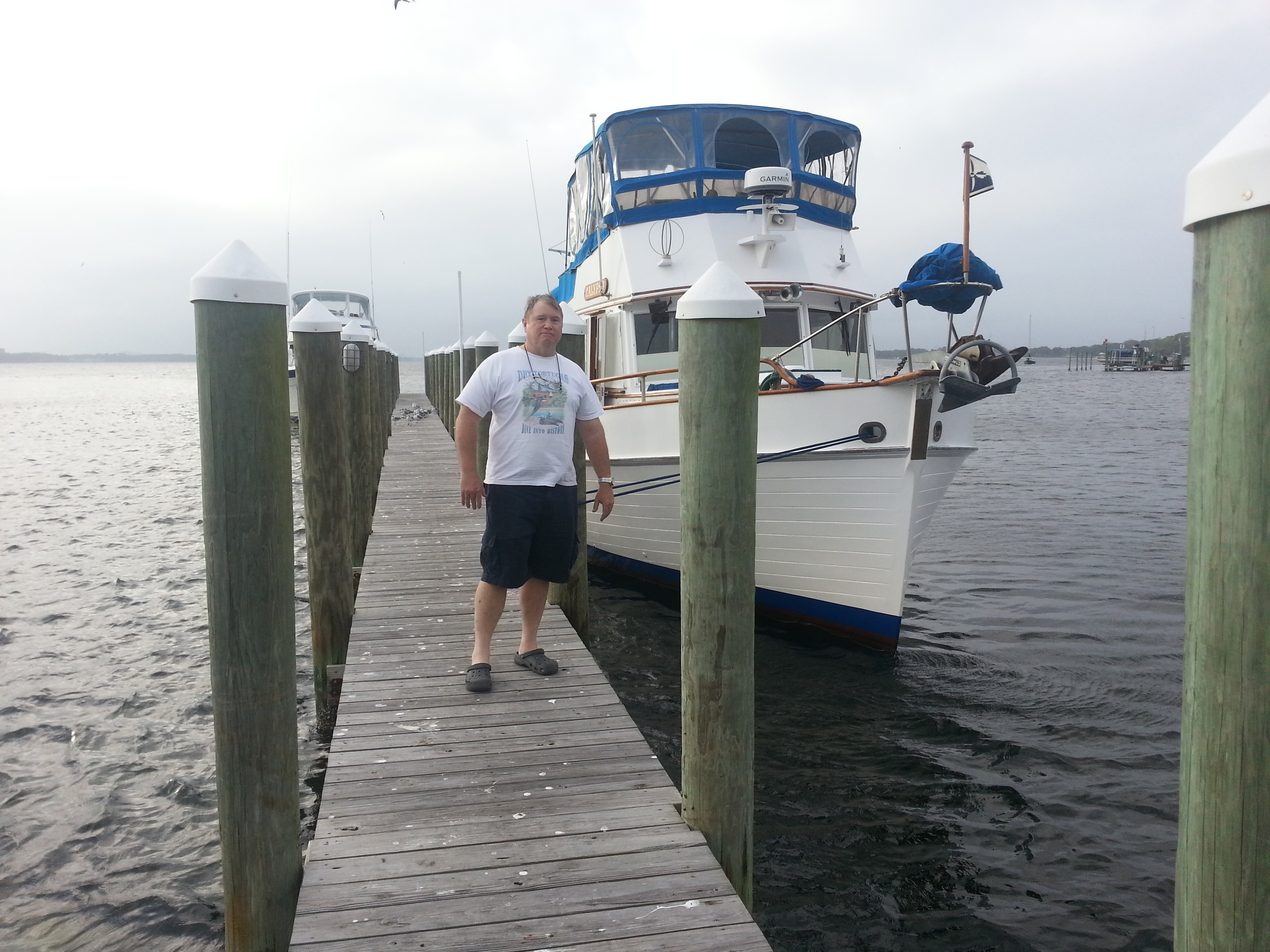 Trip update: Staying with Rich and Mary in Southport allowed my blister to heal nicely. Sunday, we went to lunch in Panama City, getting there in Rich’s Grand Banks Trawler, Calypso.