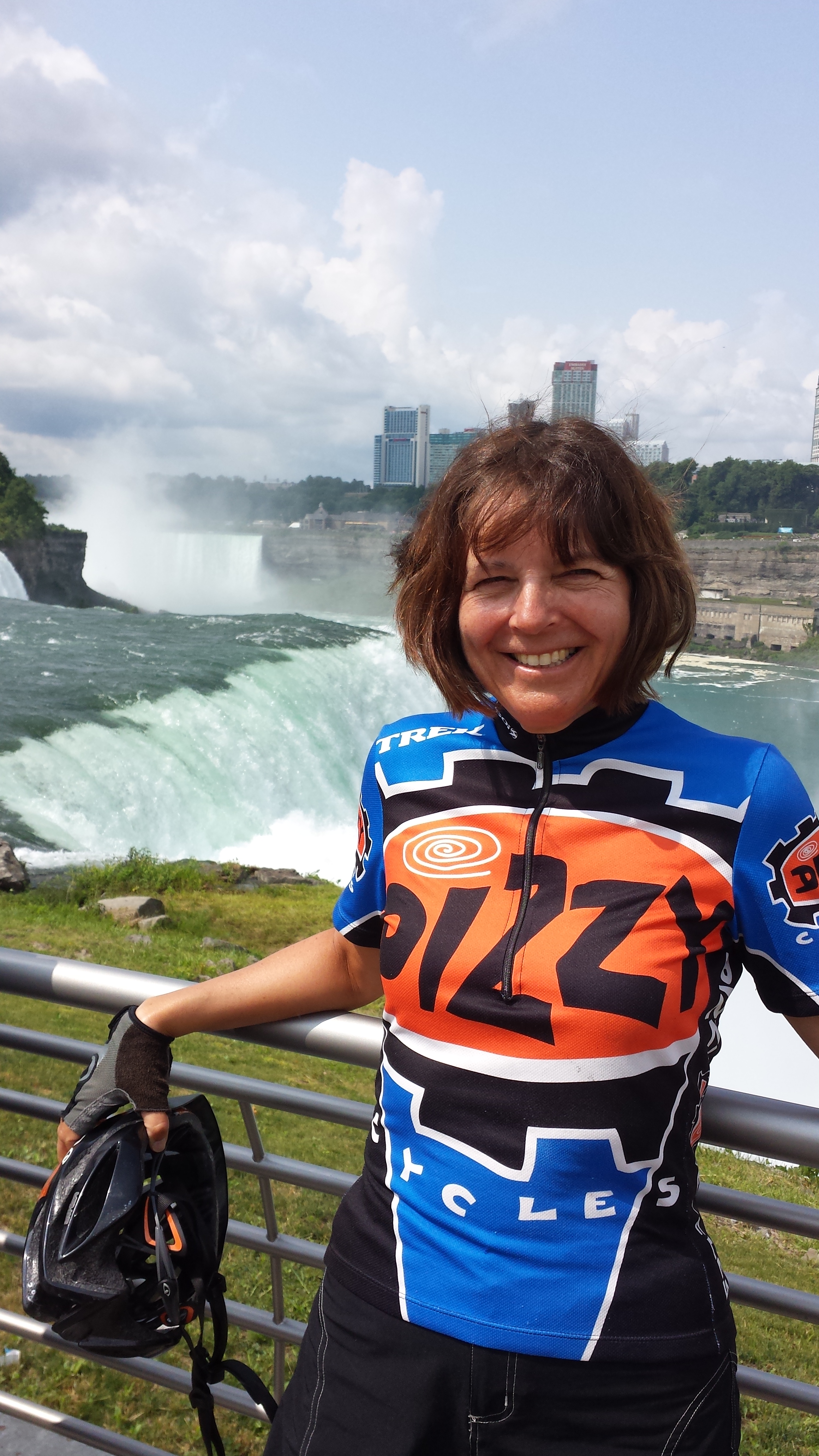 Tuesday was another long day in the saddle (127 km). To my surprise, I made it all the way to Niagara Falls, New York, at the same time that Cheryl made it to Niagara Falls, Ontario. We met on Wednesday morning when she came across the border, having ridden more than 5,000 km since leaving Vancouver, British Columbia, in mid-June. We began a long swing that is taking us along the southern coast of Lake Ontario, right through the area that I was hoping to travel through last week when the Harbor Fest in Oswego changed my plans. We will cross into Ontario across the St. Lawrence Seaway and continue to the eastern edge of Canada over the coming weeks. I am officially on vacation, and camping more often than not (no Internet). For the first time in my life, I am a true bicycle tourist. I will continue to report on this blog, especially as I notice things relevant to working while living on a bicycle.
