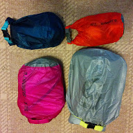 Stow sacks. I used to use re-sealable plastic bags (Ziploc®, Hefty®, etc.) to keep all my stuff organized and dry, within limited success. It was worth the money to buy waterproof dry sacks in an outdoor store.