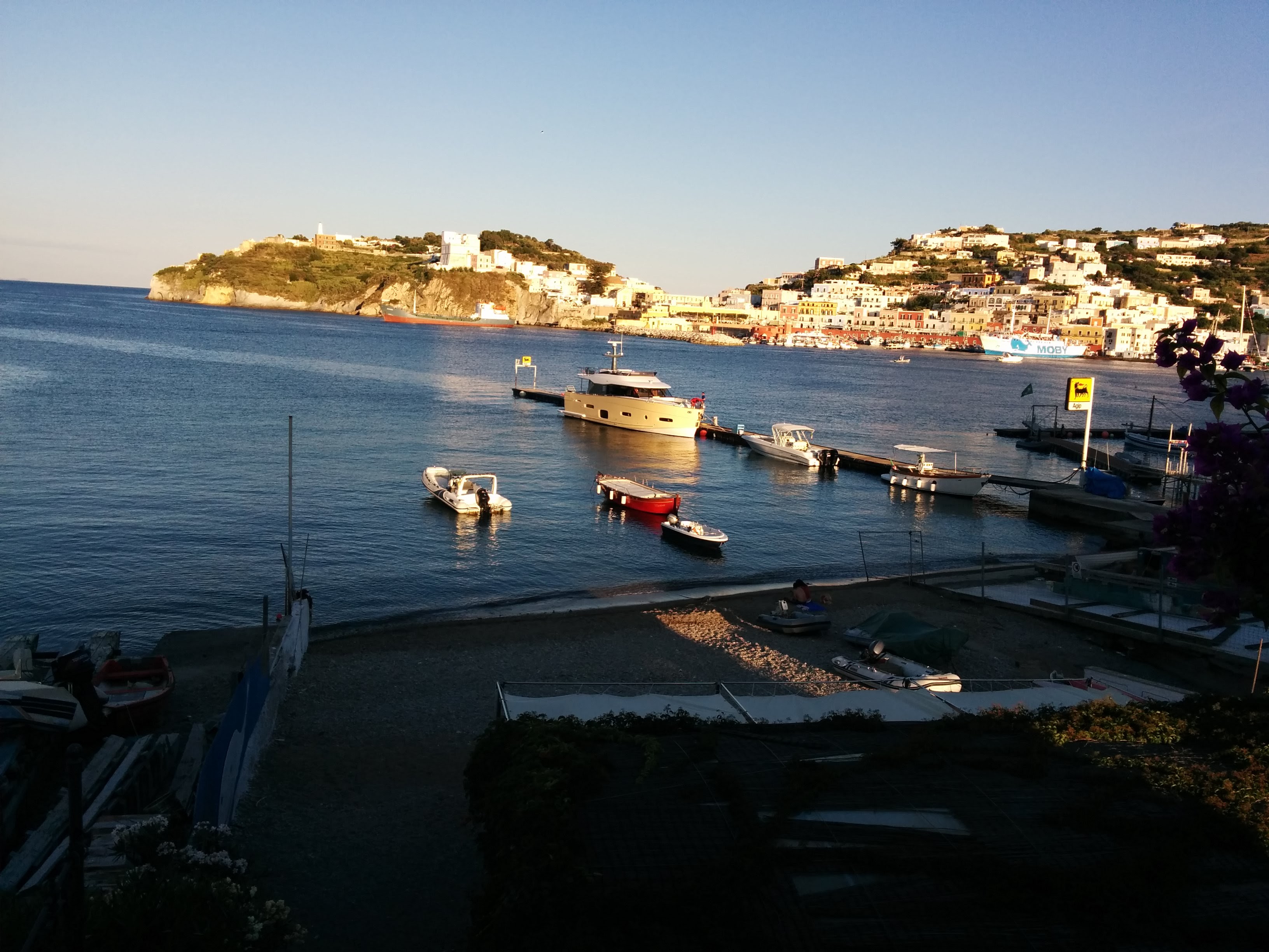 Even in the dark, we could tell that this island was a charming location. The hotel was about as far from the hydrofoil landing as it could be and still be in the town of Ponza. Clearing the port area involved bumping on cobblestones, then travelling through throngs of tourist