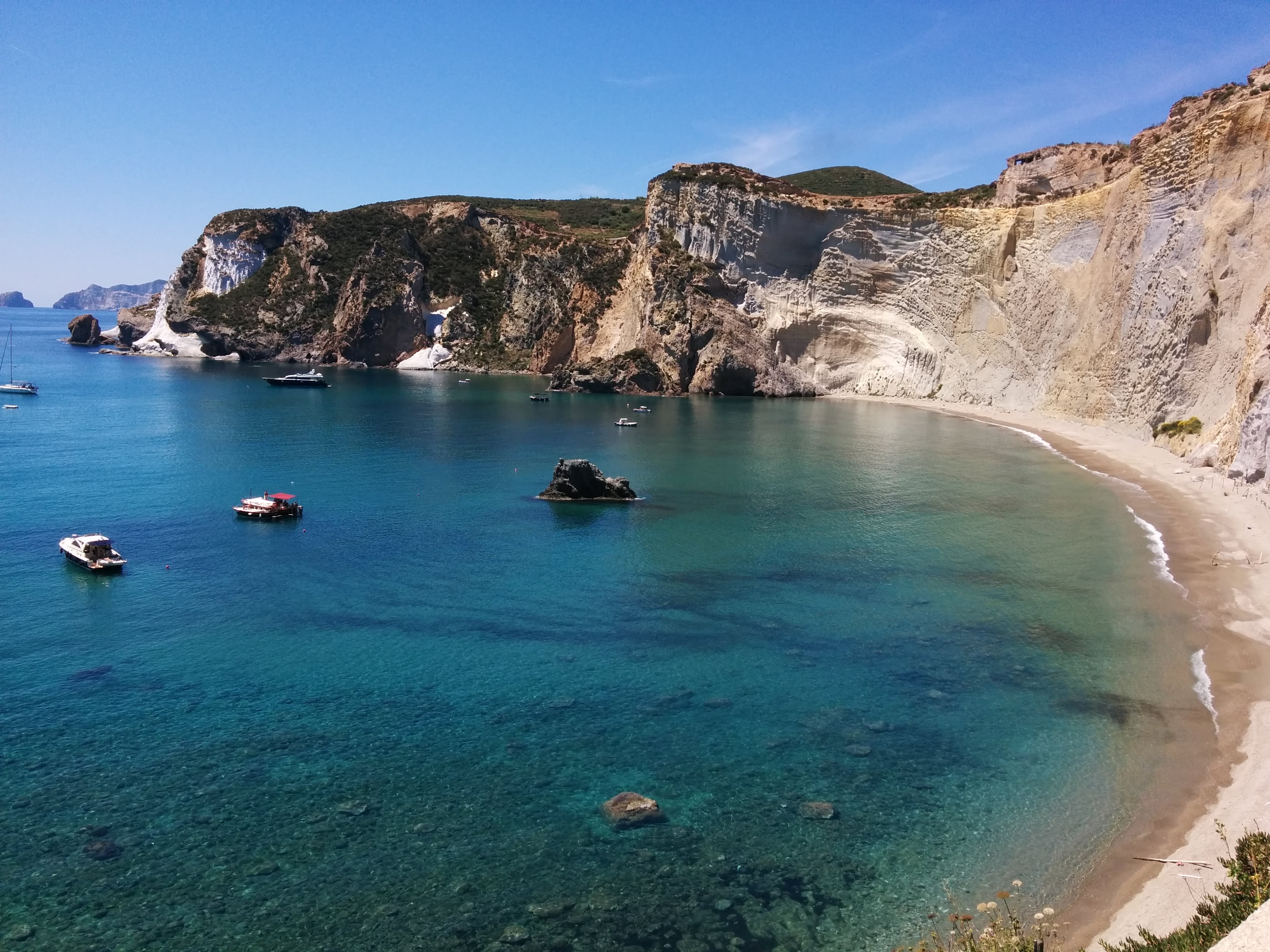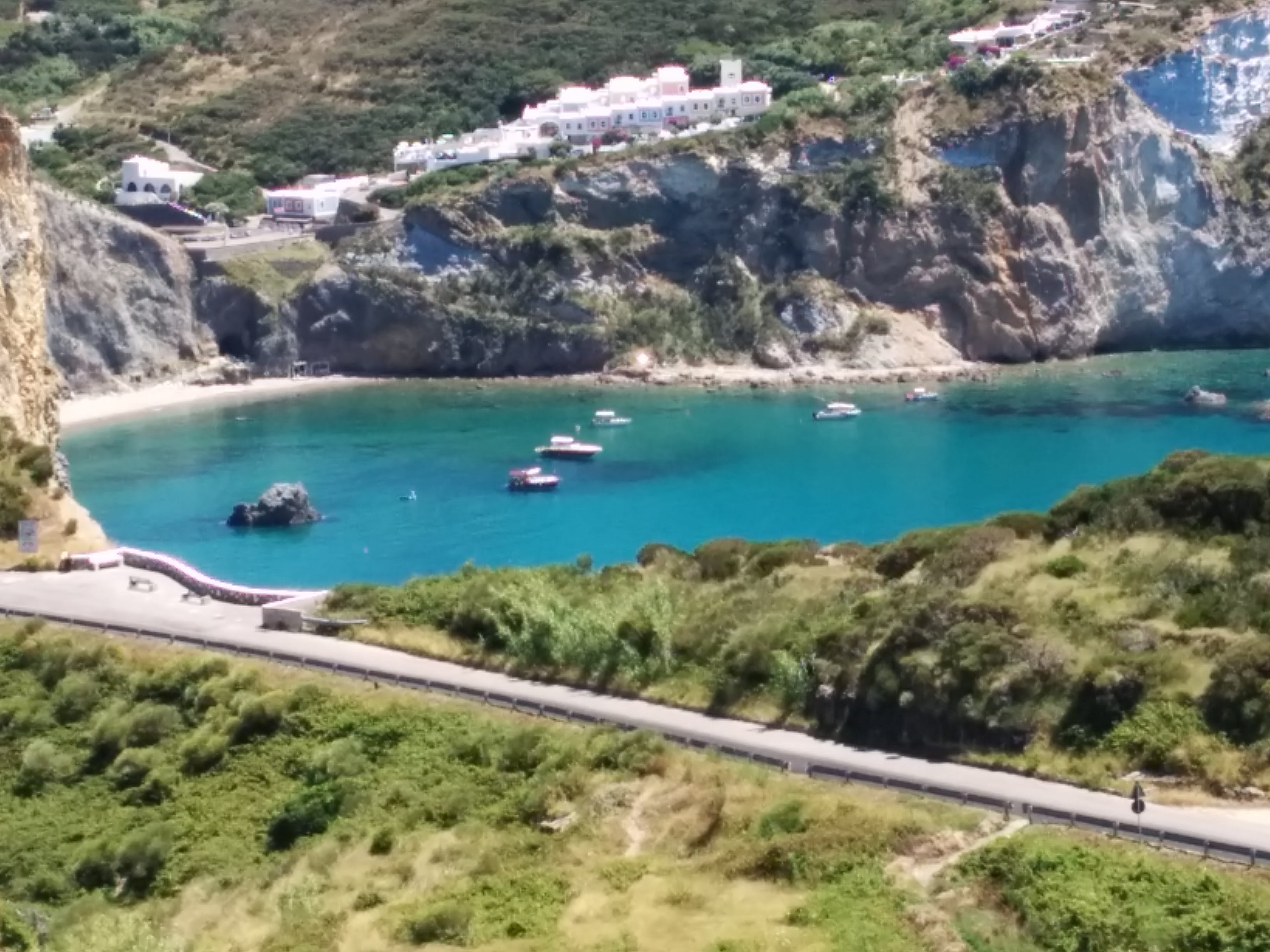 Ponza has some of the most beautiful beaches anywhere, but the nicest ones are only accessible by boat. The most famous one, Chaia di Luna, has a road, which has been closed for years, unrepaired since a landslide. I suspect that the boat rental and water taxi guilds are happy to keep it that way. When we returned to town, we took the water bus to the “town beach”. Taking a swim during or after a ride would become a regular routine.