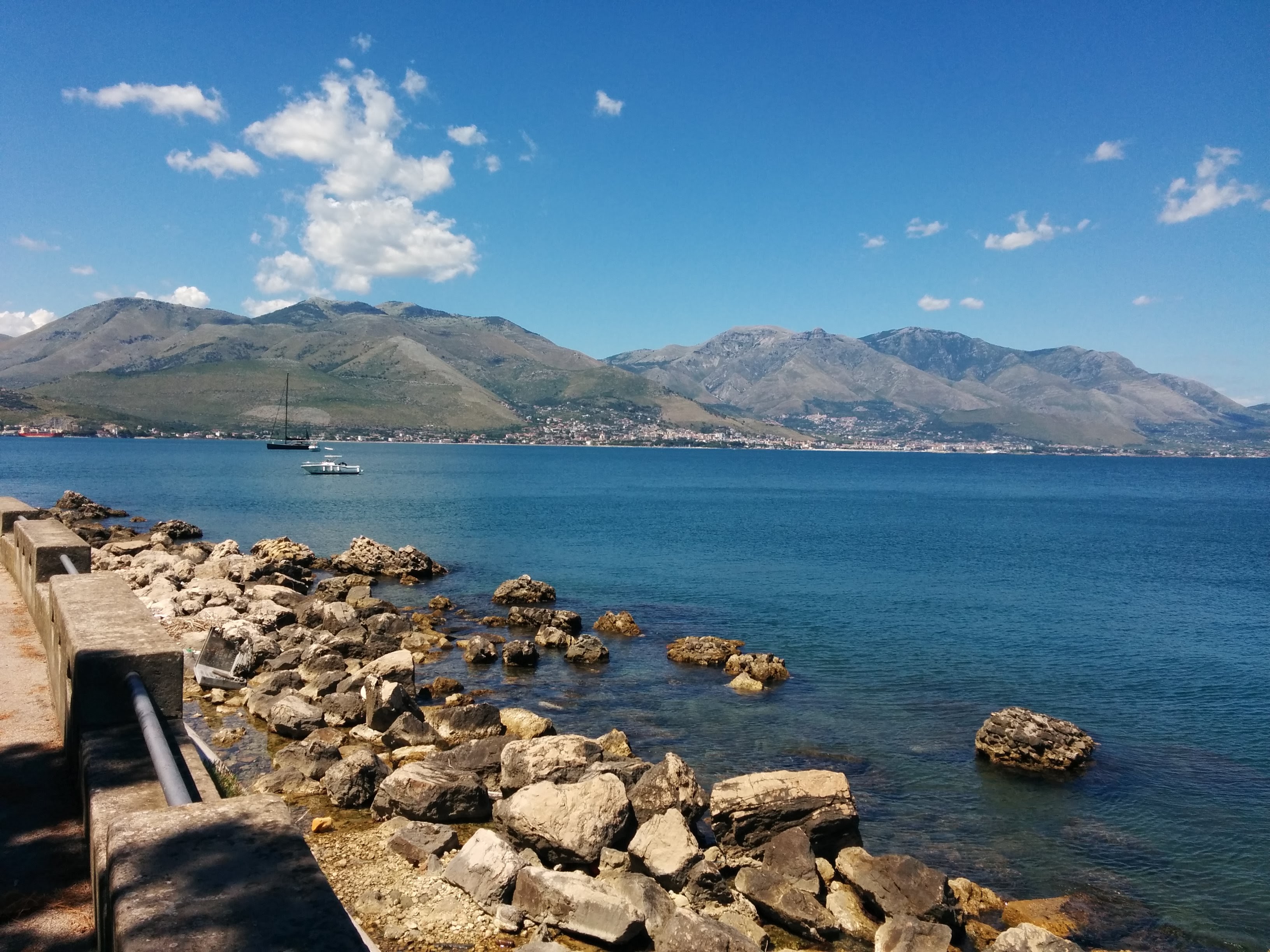 From Anzio, we had an easy ride along the coast, skirting what used to be the Pontine marshes. Mussolini had them drained, and today the provinces of Latina and Rome boast some of the most fertile, flat agricultural land in the country. There was an enormous naval base between the road and the sea for the first 30 km. It turned out to be a recreation facility for the Italian military. While the wall cut our view of the sea, for much of the ride we were surrounded by the pine trees of a national park and quiet farm roads. We camped in the Monte Circeo National Park. Circe’s Island, made famous in The Odyssey, is now a promontory.