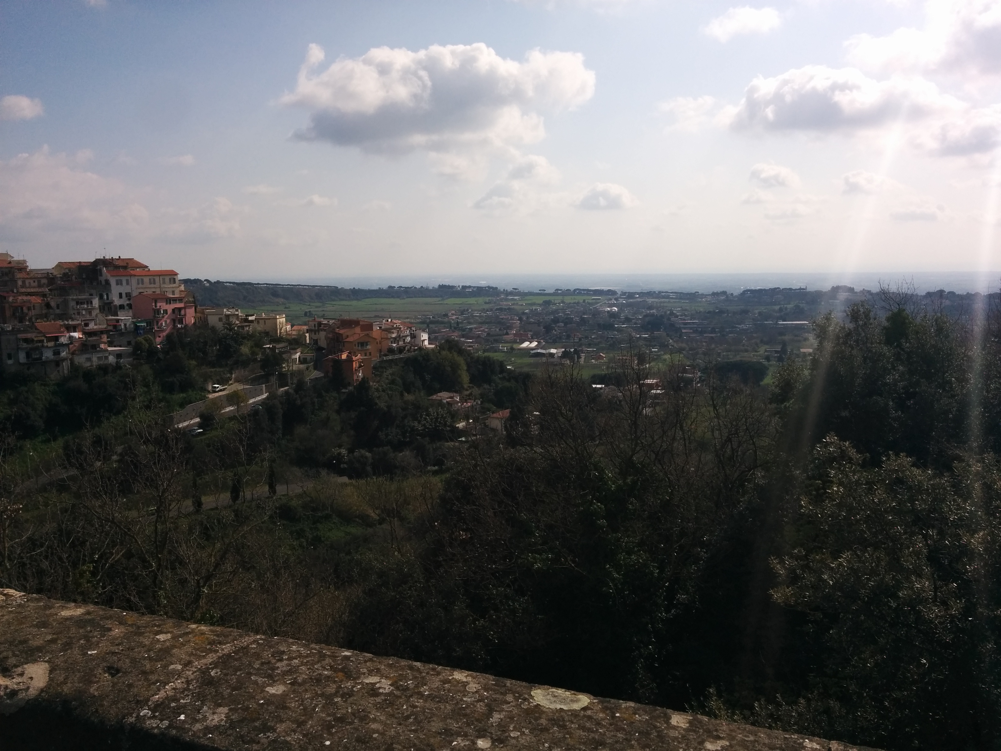 I passed the aqueduct of Acqua Felice, where the earth has risen so much since ancient times, that people have turned the tops of the arches into storage cages. The ancient road led me gently up to the Regional Park of the Castelli Romani, where I had a splendid view of the Agro Pontino (the Pontine Plain).