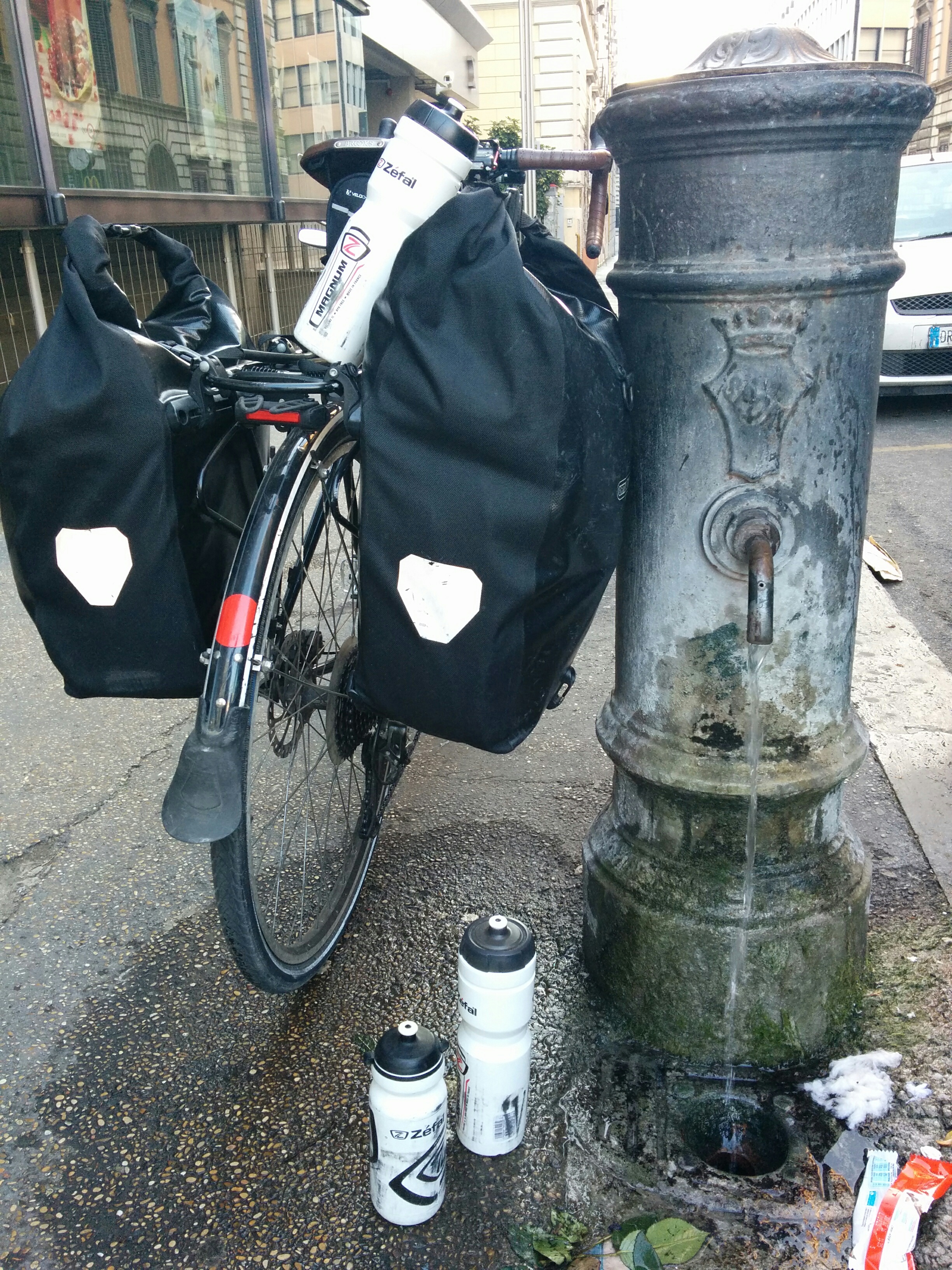 It was known as the Pontine Marshes, an inhabitable, malarial swamp, until Mussolini had them drained. The air was clear, thanks to there being no industry or traffic belching fumes on the holiday weekend. I could see the Tyrrhenian Sea 40 km away. On Sunday, I refilled my water bottles with Roman city water.