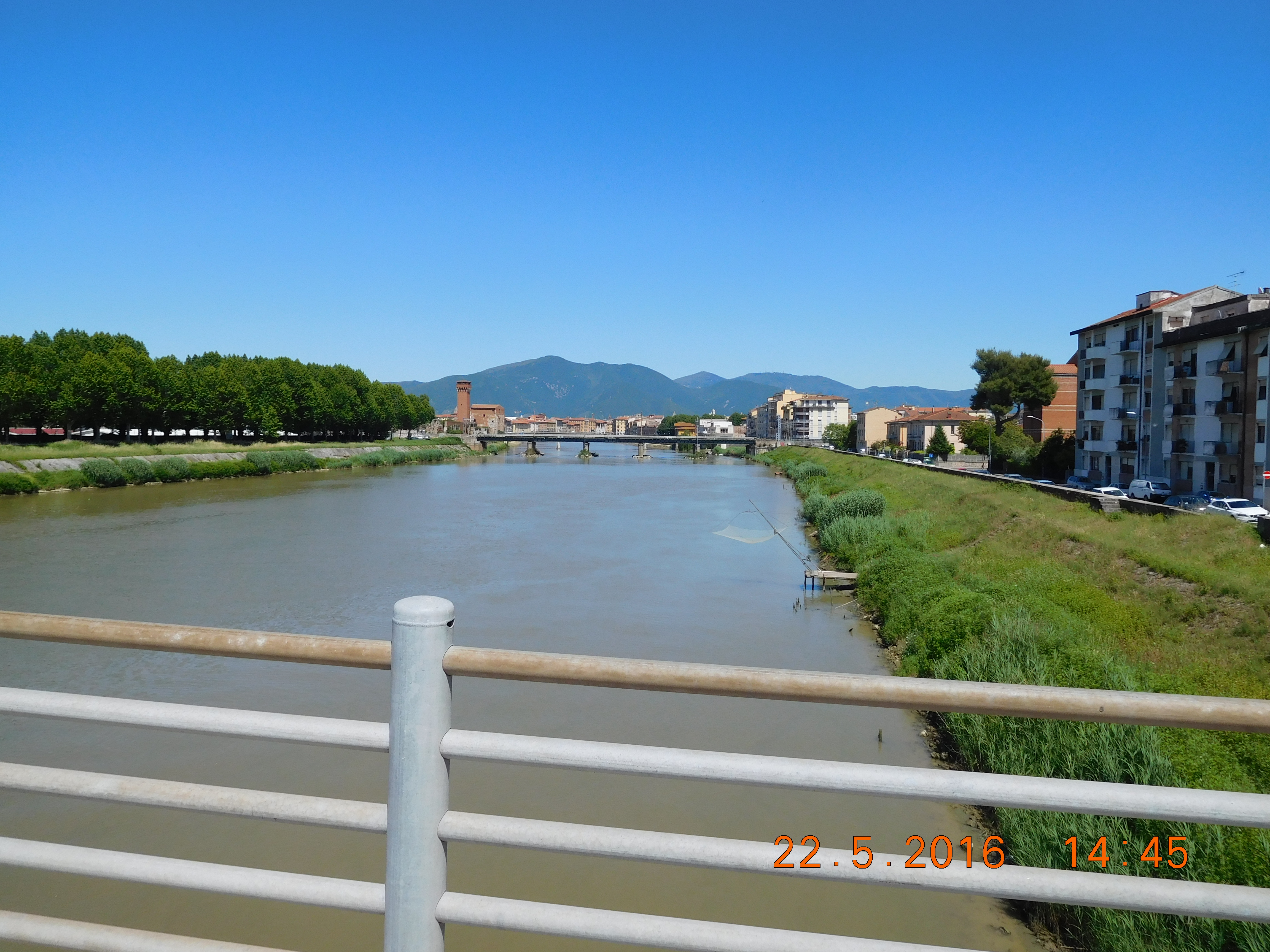 Sunday morning, the sun woke me in plenty of time to catch a train from the San Pietro station to Pisa. The Europa Camping complex lay 35 km north of Pisa just south of Viareggio. Riding under grey skies over the flattest part of Tuscany, I arrived early enough to pitch the tent, wash and hang laundry, and find supper at the campground restaurant. I slept very well on my new Quecha air mattress, half the size and weight of my old Thermarest Neo-Air.