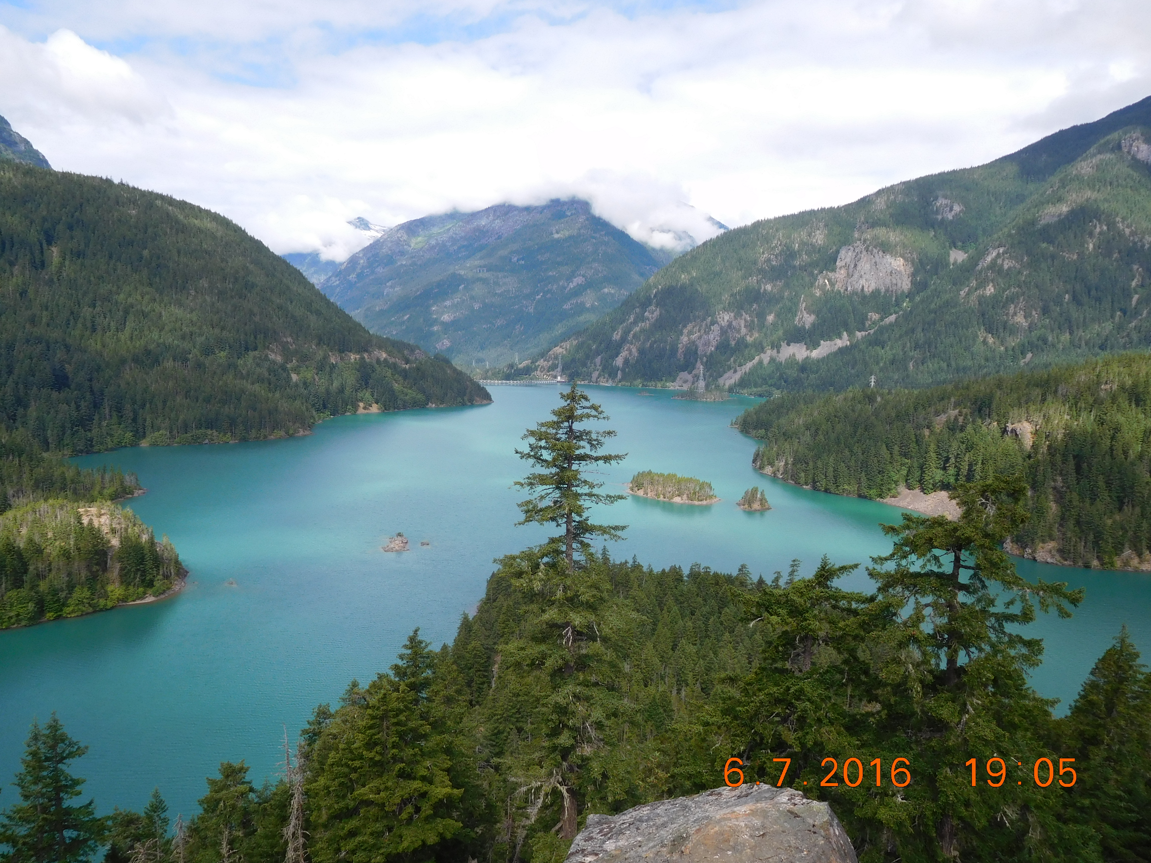 Tuesday, we started the tour of the Northwest with brunch at the Pike Place Market. We also picked up a large salmon at the Fish Market, and lots of fruit and produce to fill the cooler in the SUV. State Route 20 took us up a long, gentle climb alongside the Skagit River, through a fertile valley that led to Diablo Lake in the North Cascades National Park.