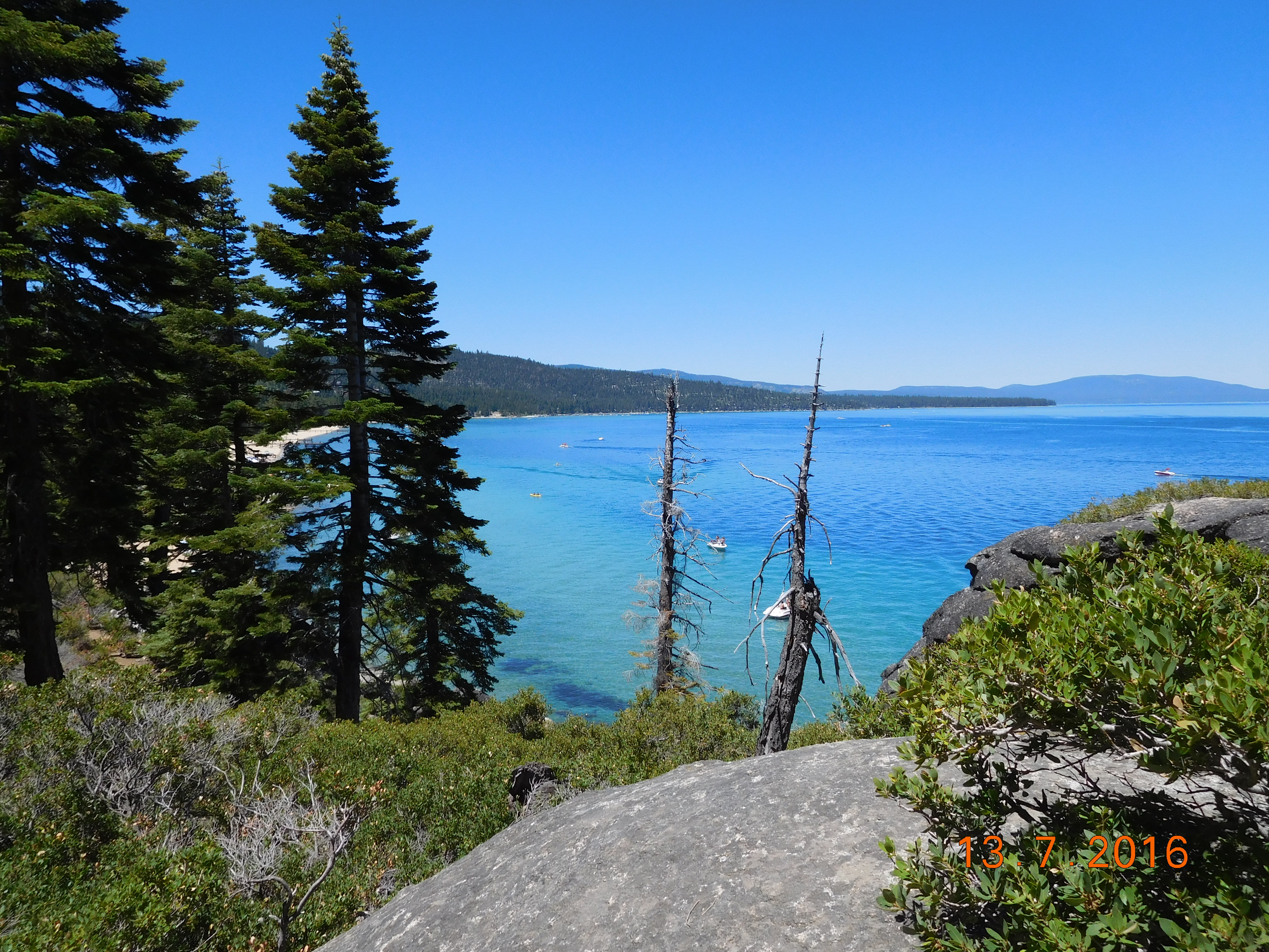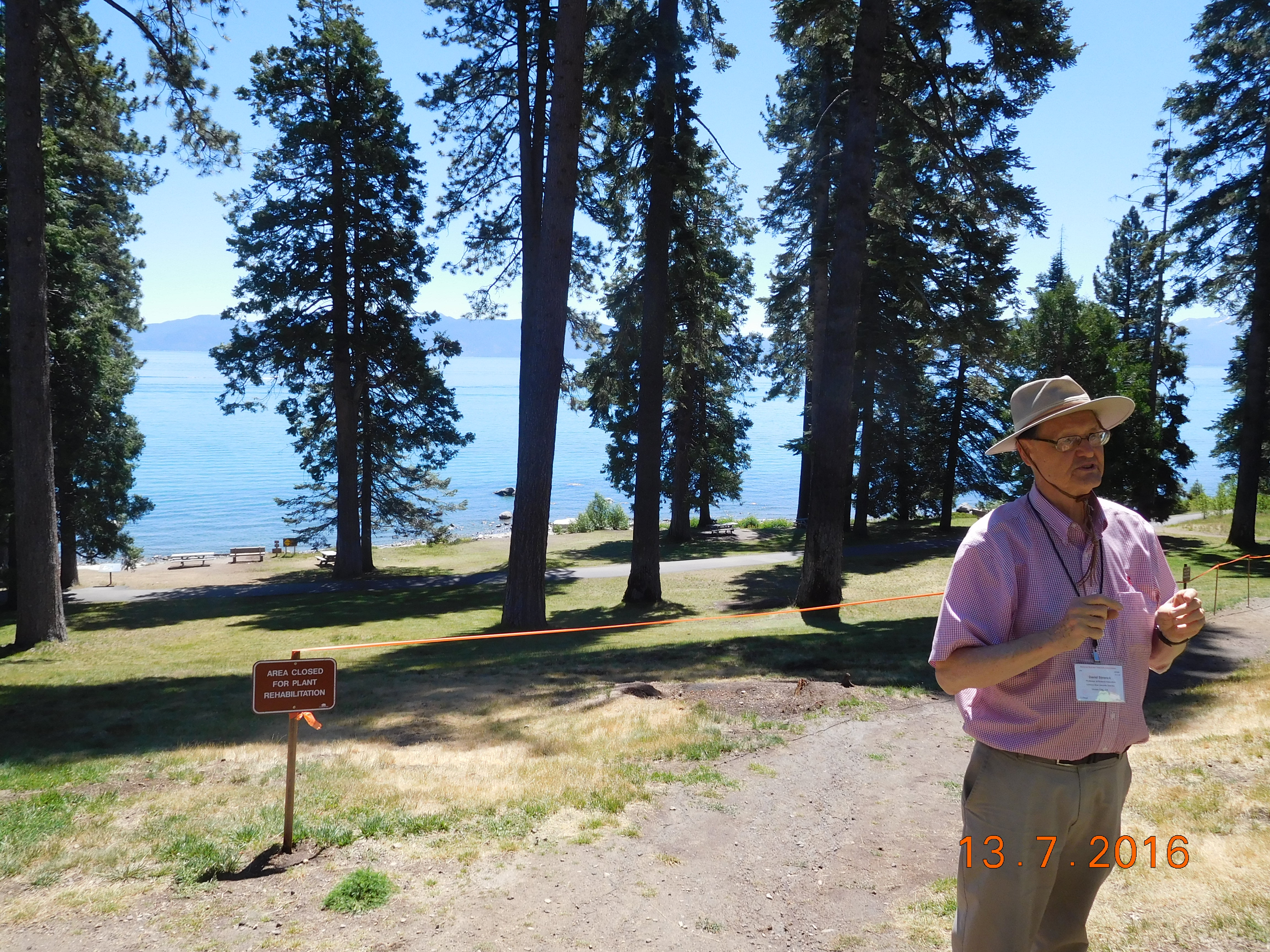 David Stronck had just started a very interesting tree identification workshop, which included a walk around the beautiful grounds.I enjoyed learning how to identify what we would be seeing, especially considering the uniqueness of the different species (redwoods, sequoias, incense cedars, pines, red and Douglas firs, hemlocks, etc.). We had stayed in Sugar Pine Point State Park rather longer than we intended, but we stopped at D.L. Bliss State Park anyway.