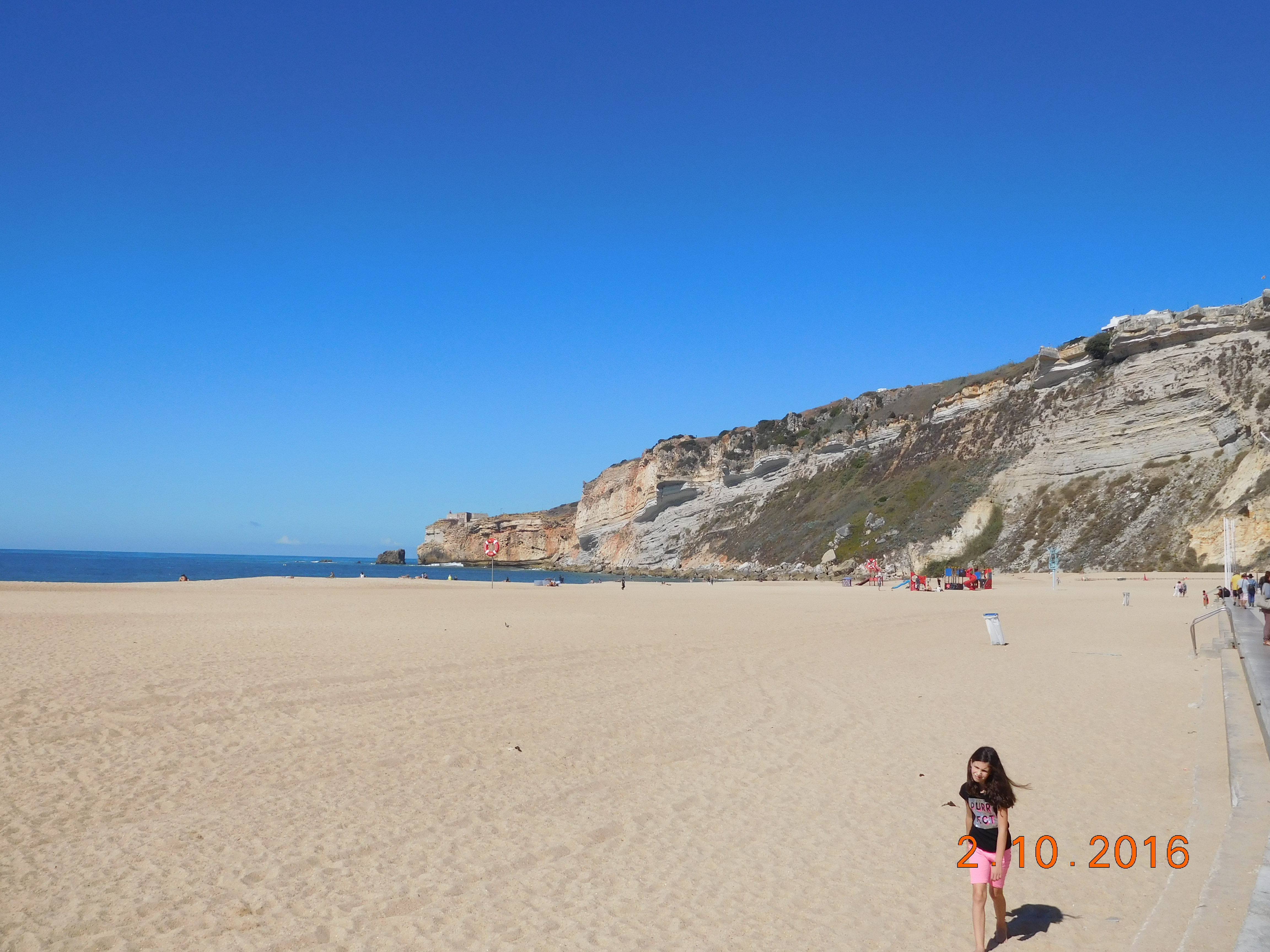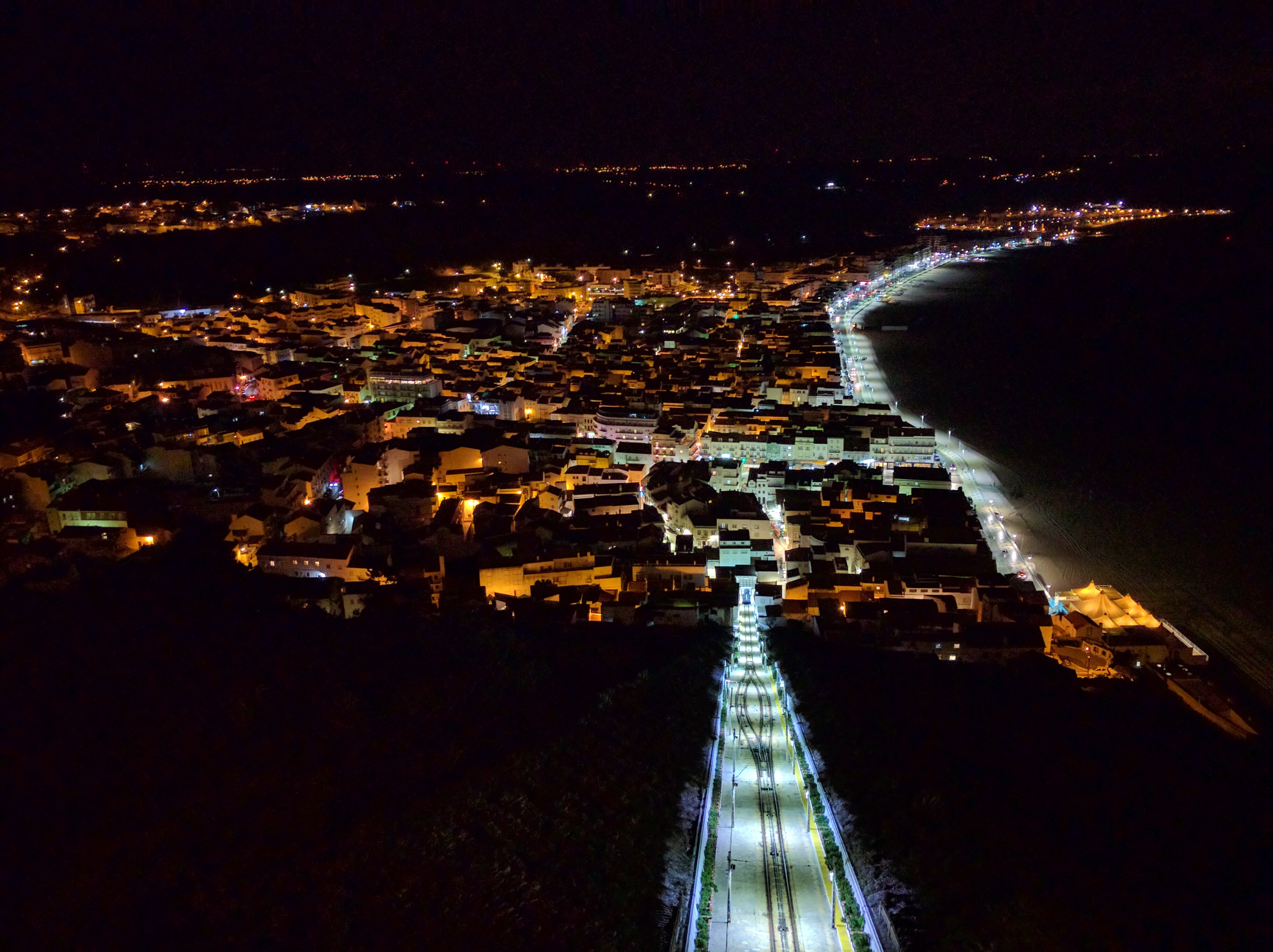 We also arrived early enough to enjoy sunset from the ocean promenade. We took the cable car to the top of town and admired the lights. Nazaré is a major tourist town, and even on 1 October it was in full swing.