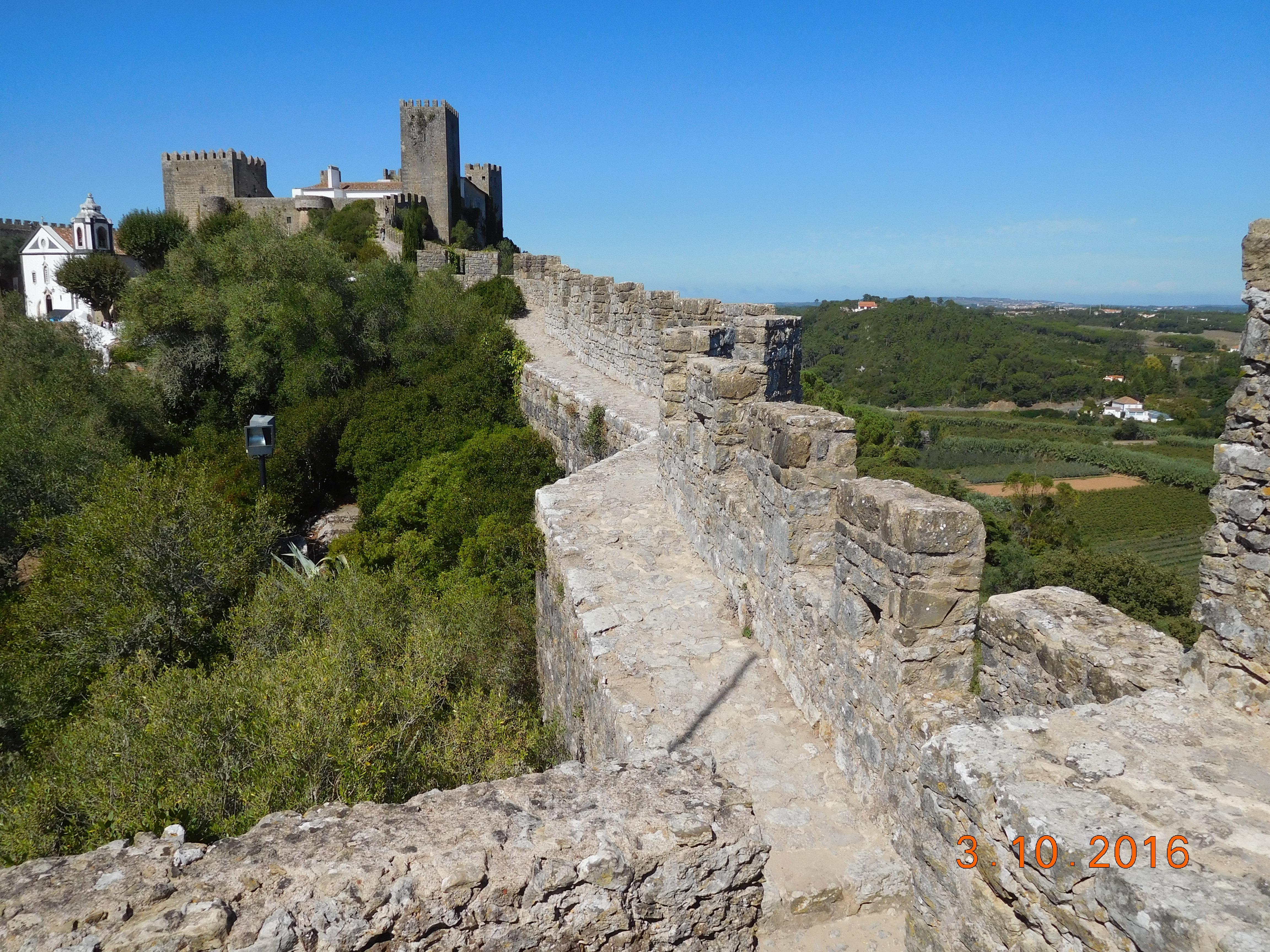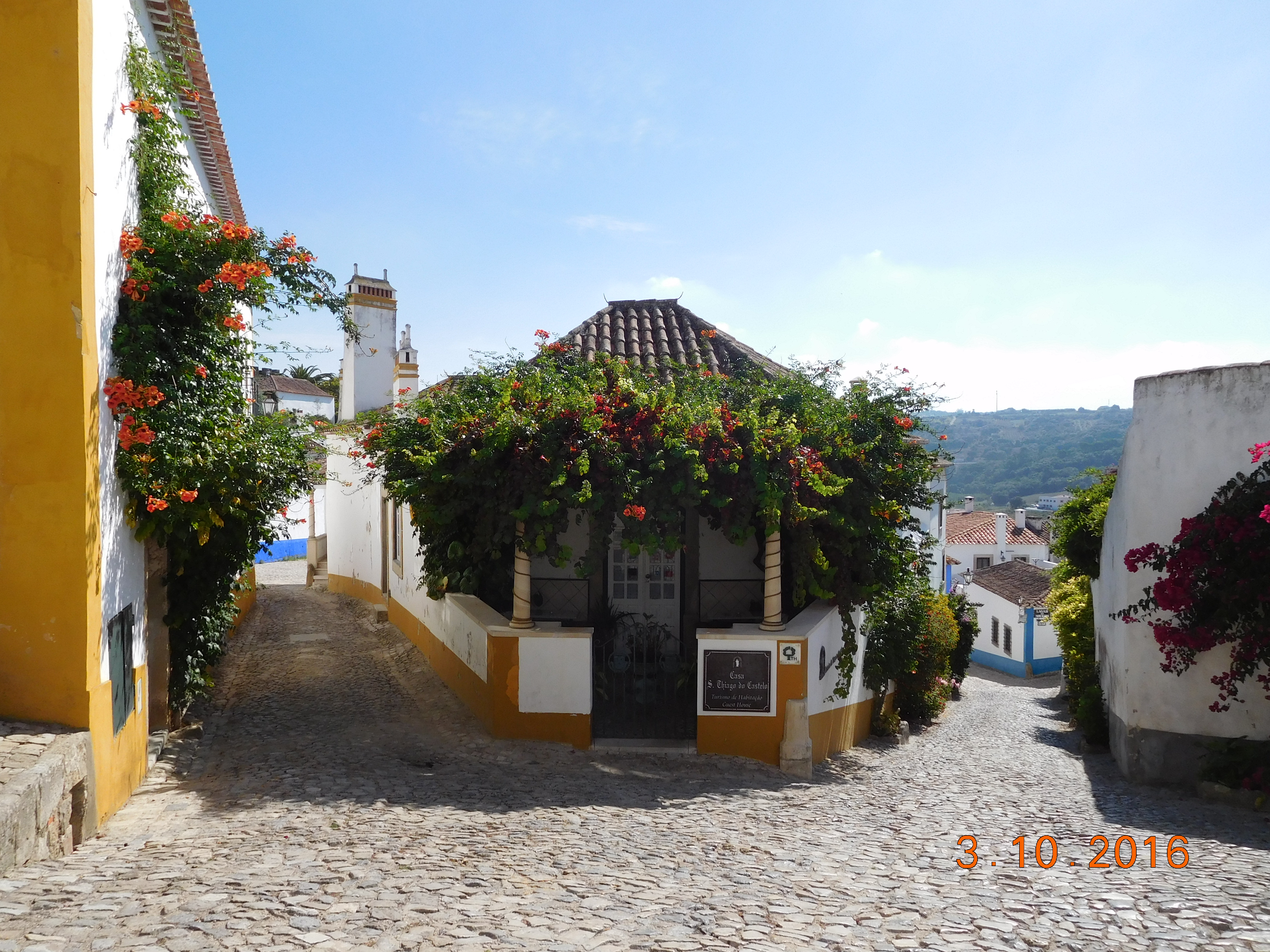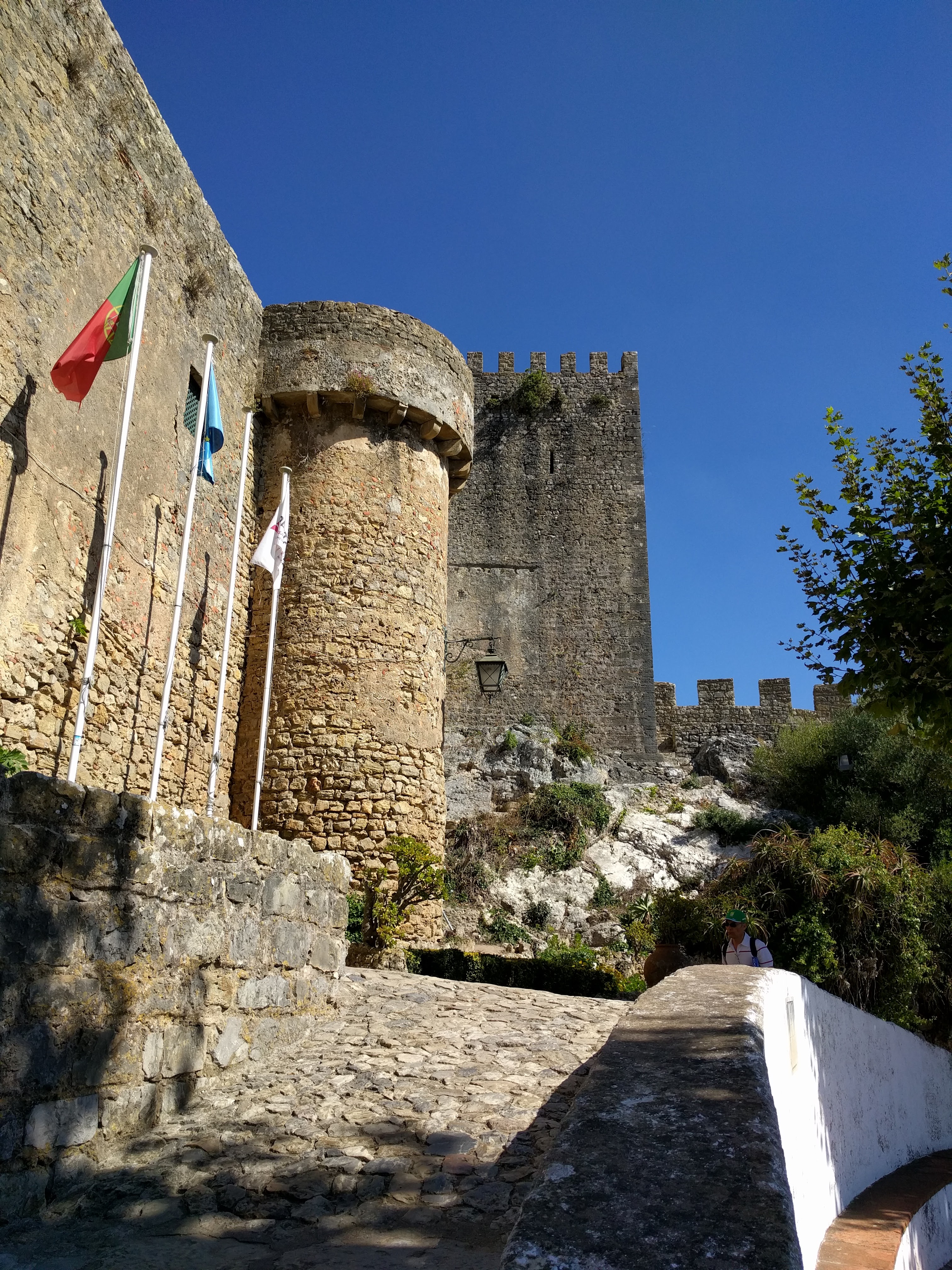 We enjoyed stunning cliffs and beautiful beaches along the coast from São Martinho do Porto to Foz do Arelho. Then we turned inland along the north bank of the Arelho River, around the southern suburbs of the industrial town of Calda da Rainha and south to Obidos. We arrived at the quaint, small medieval city at 1715, separately. Cheryl chose to take the road around to the main gate, while I walked 400 meters to the hotel, leaving my bicycle locked outside a side gate. That was a trick I learned from her own stories.