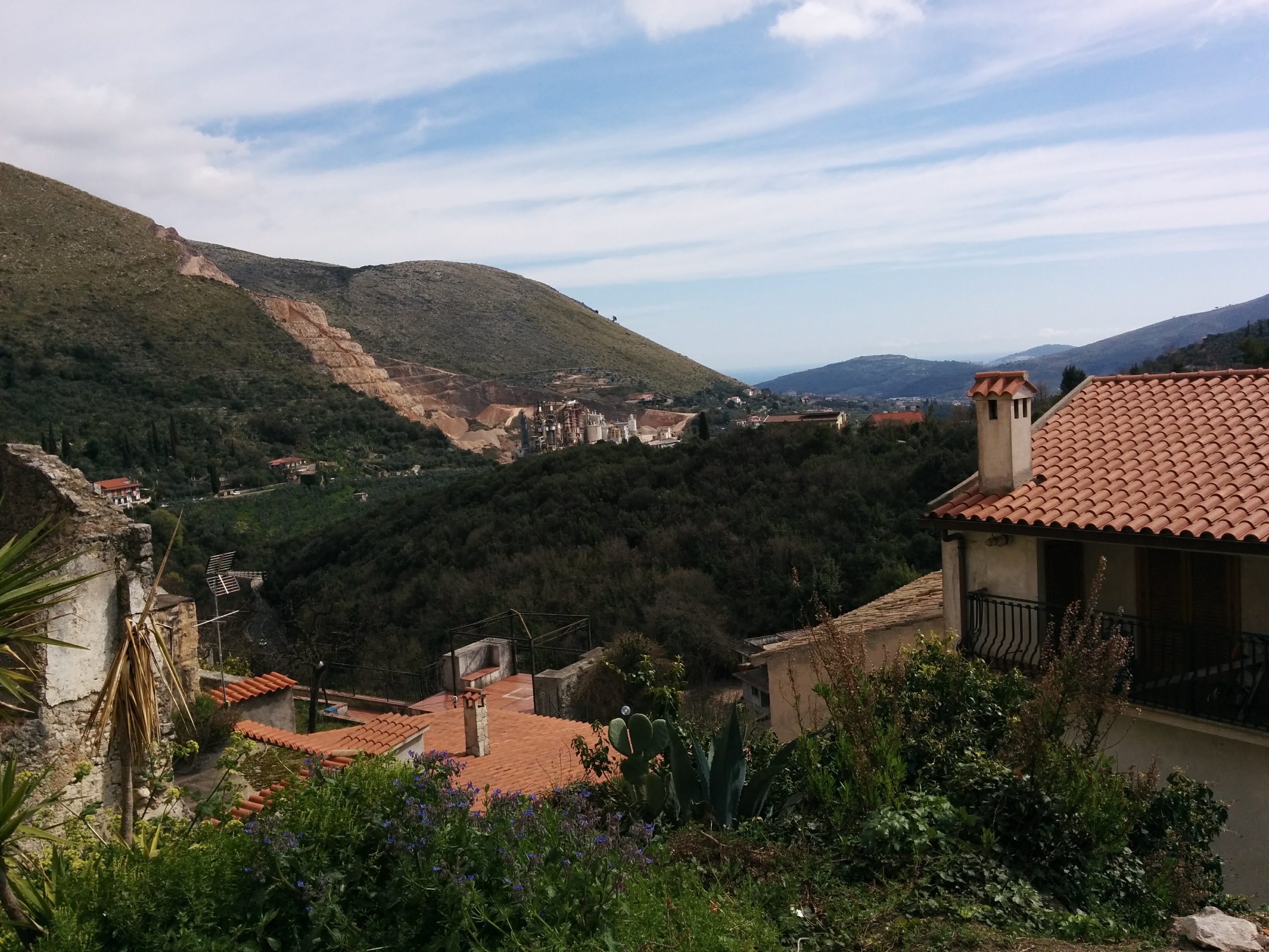 The view from the piazza at the top of the hill afforded a unique view of the valley leading back toward Formia – and of the large quarry sitting against the hill. I had never realized that the quarry was there, because the processing plant hides the large scar from viewers passing on the train or the Via Appia.