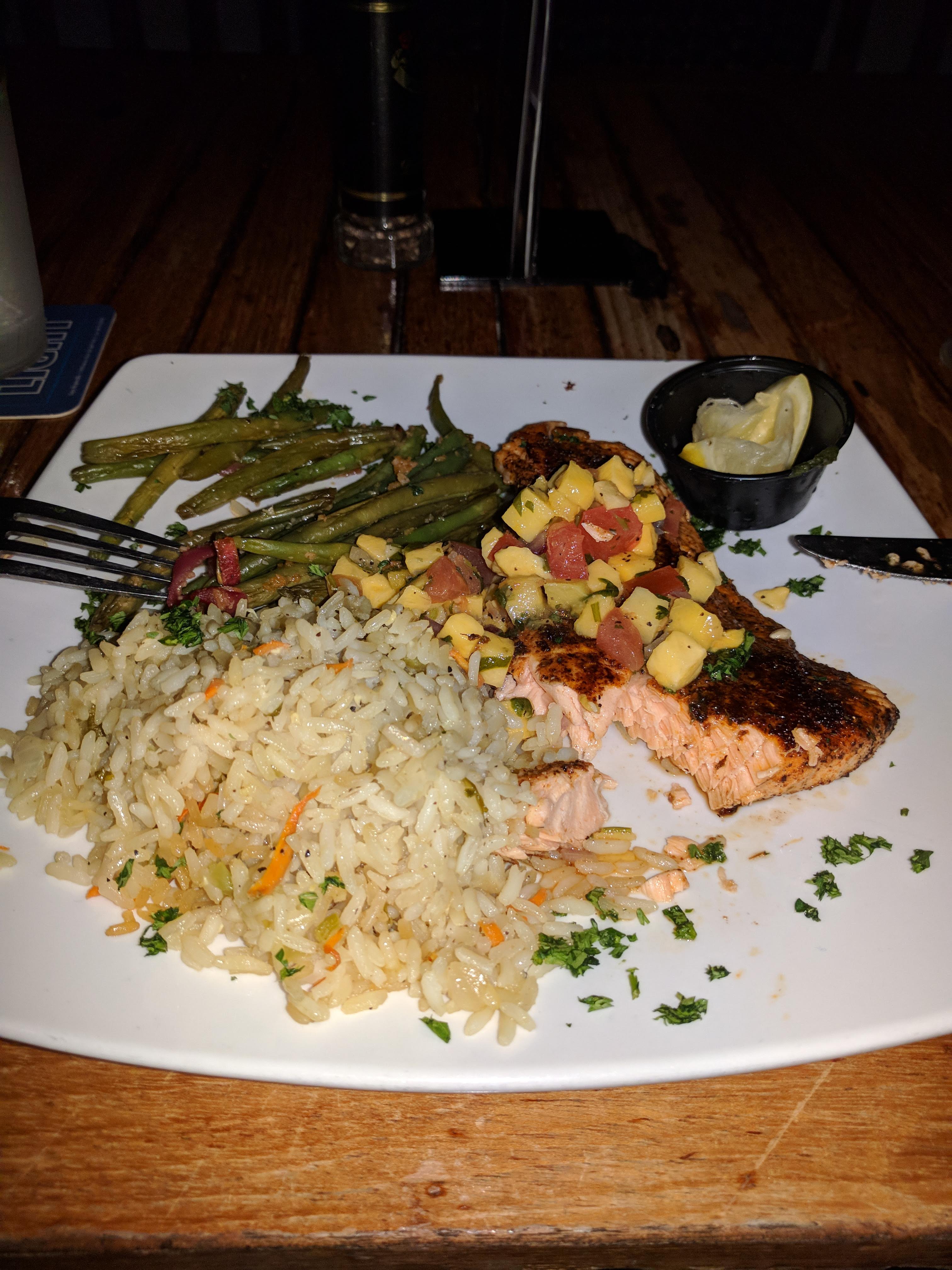 The Hutchinson Island Plaza and Suites was a welcome stop after 65 km on the bike. That wasn’t very far, but it felt good for being only my third day. I treated myself to a seafood dinner at The Edge restaurant next door, between rain showers.