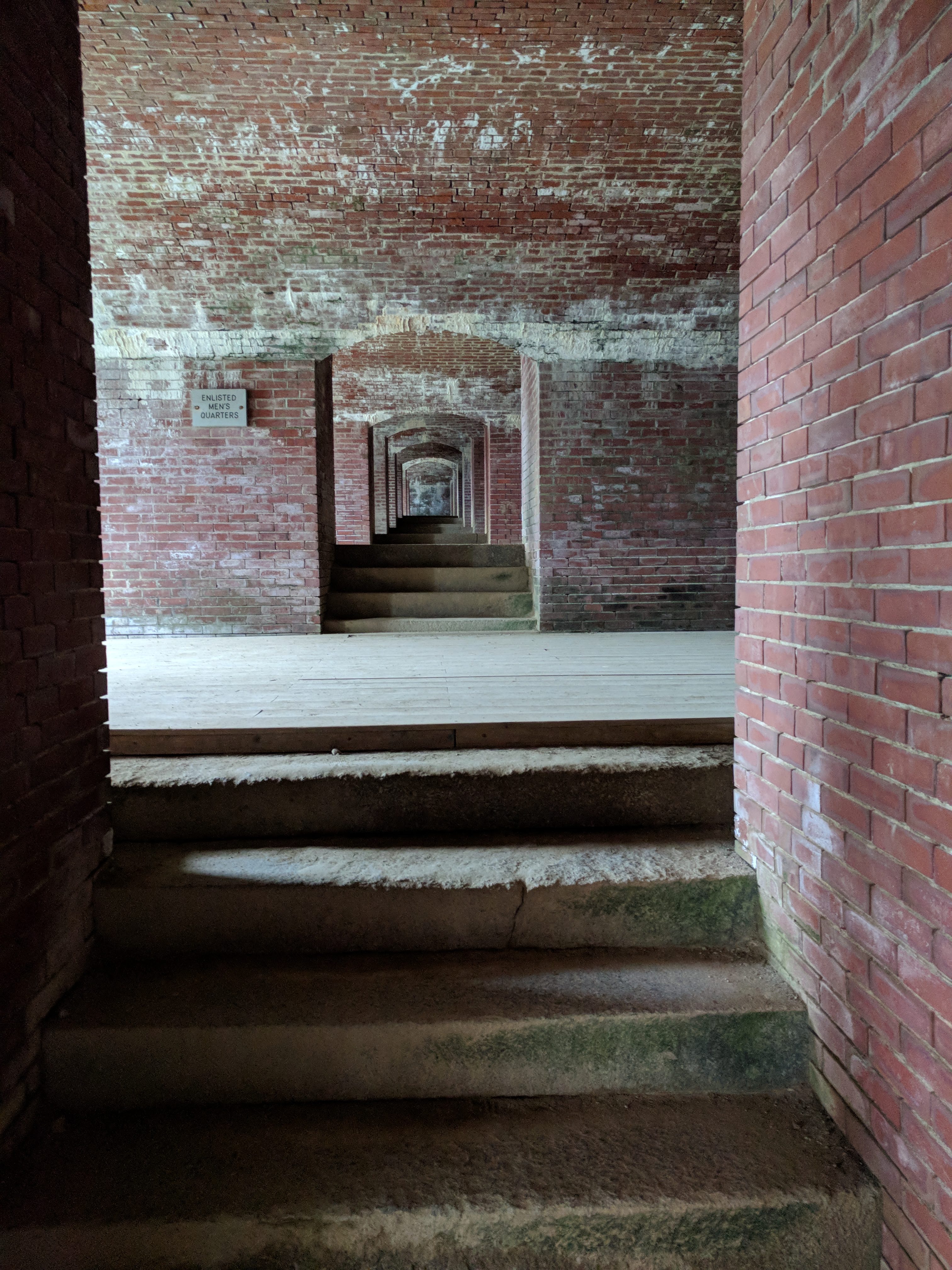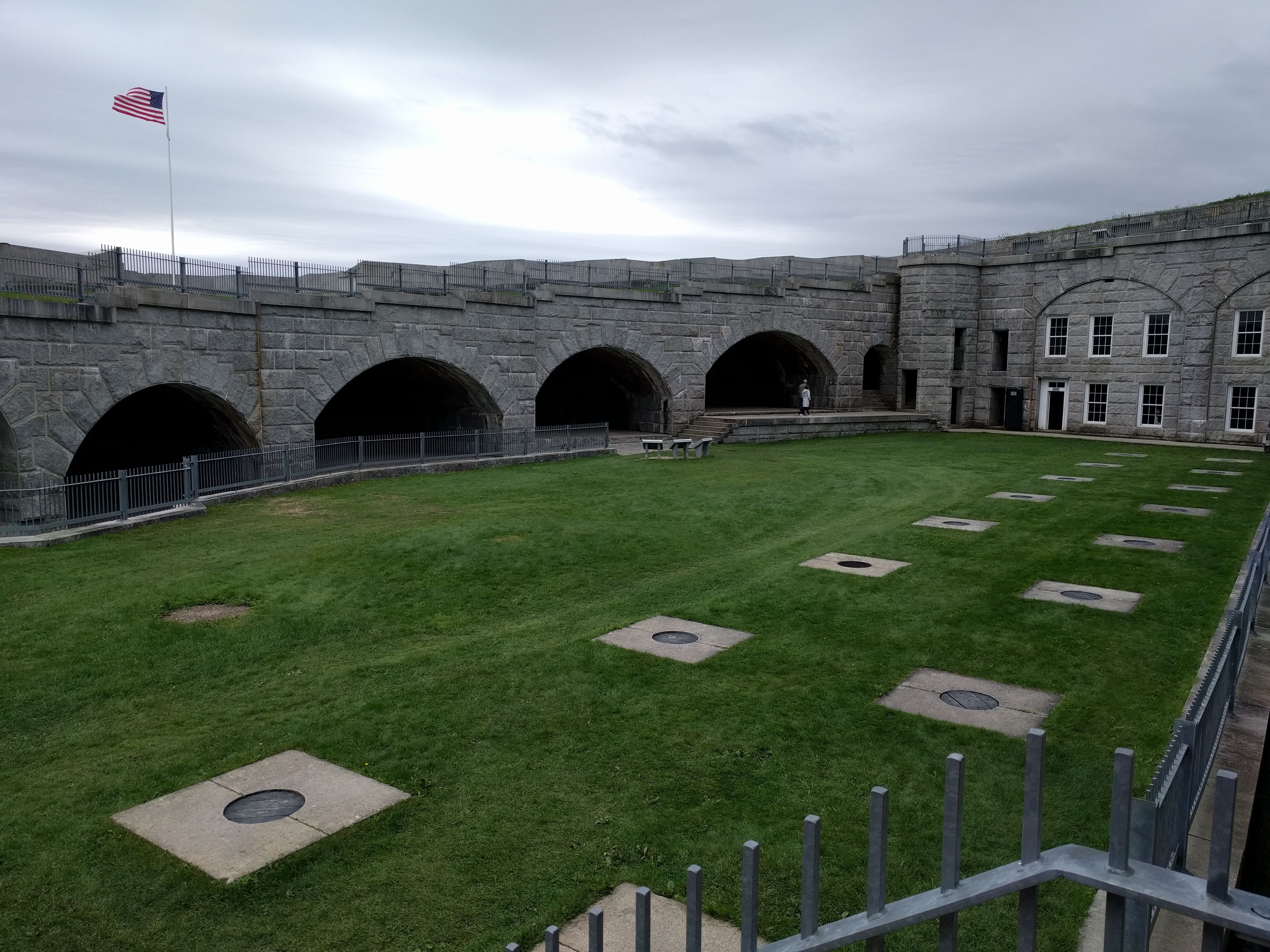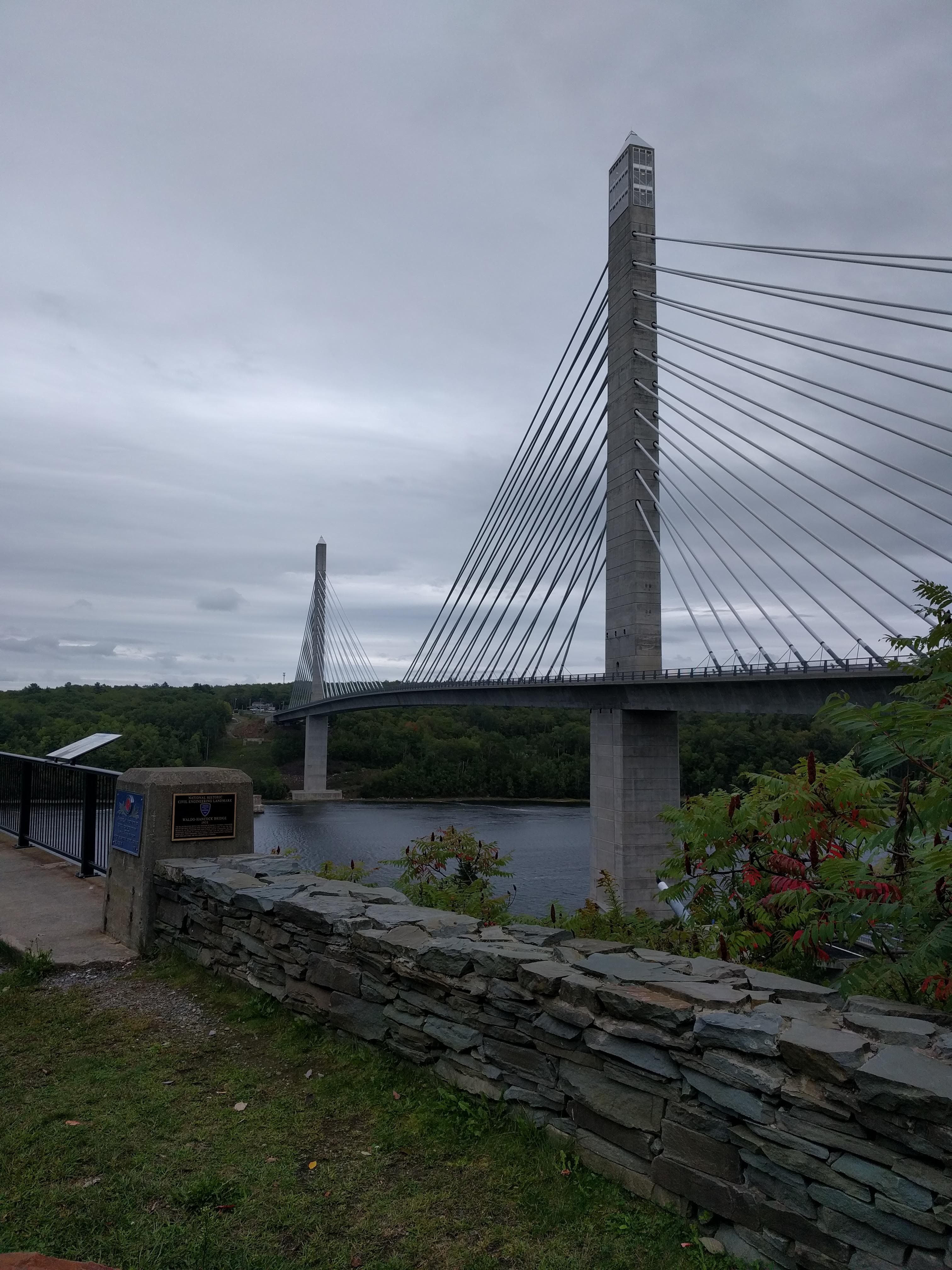 Saturday, the 14th, started out cold and sunny. Before crossing the Penobscot Narrows Bridge, we peeled off to visit Fort Knox. This magnificent 19th Century granite fort was built during the early years of the Republic, when attacks by the British or by privateers were a major concern. It incorporated all the latest military engineering of the day but became obsolete before it was ever attacked.