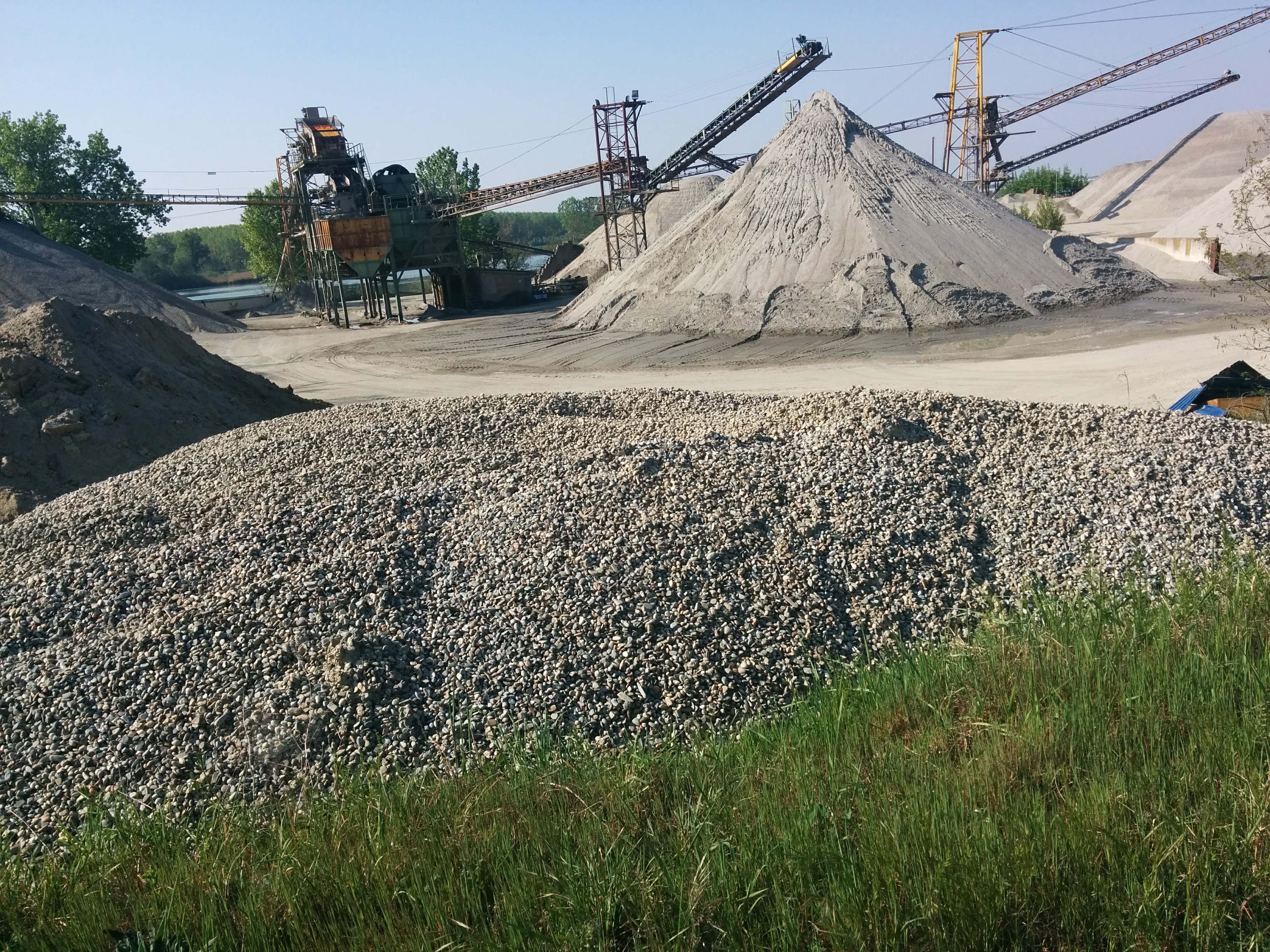 The path dropped off the levees at each little town, but I managed not to get lost, having now learned to ignore the street signs (intended for cars), and look for the levees and any dirt track leading to them. I also passed a riverside quarry, the first of several, which showed me that the silt carried by the river from the Alps could be harvested for clays and aggregates.