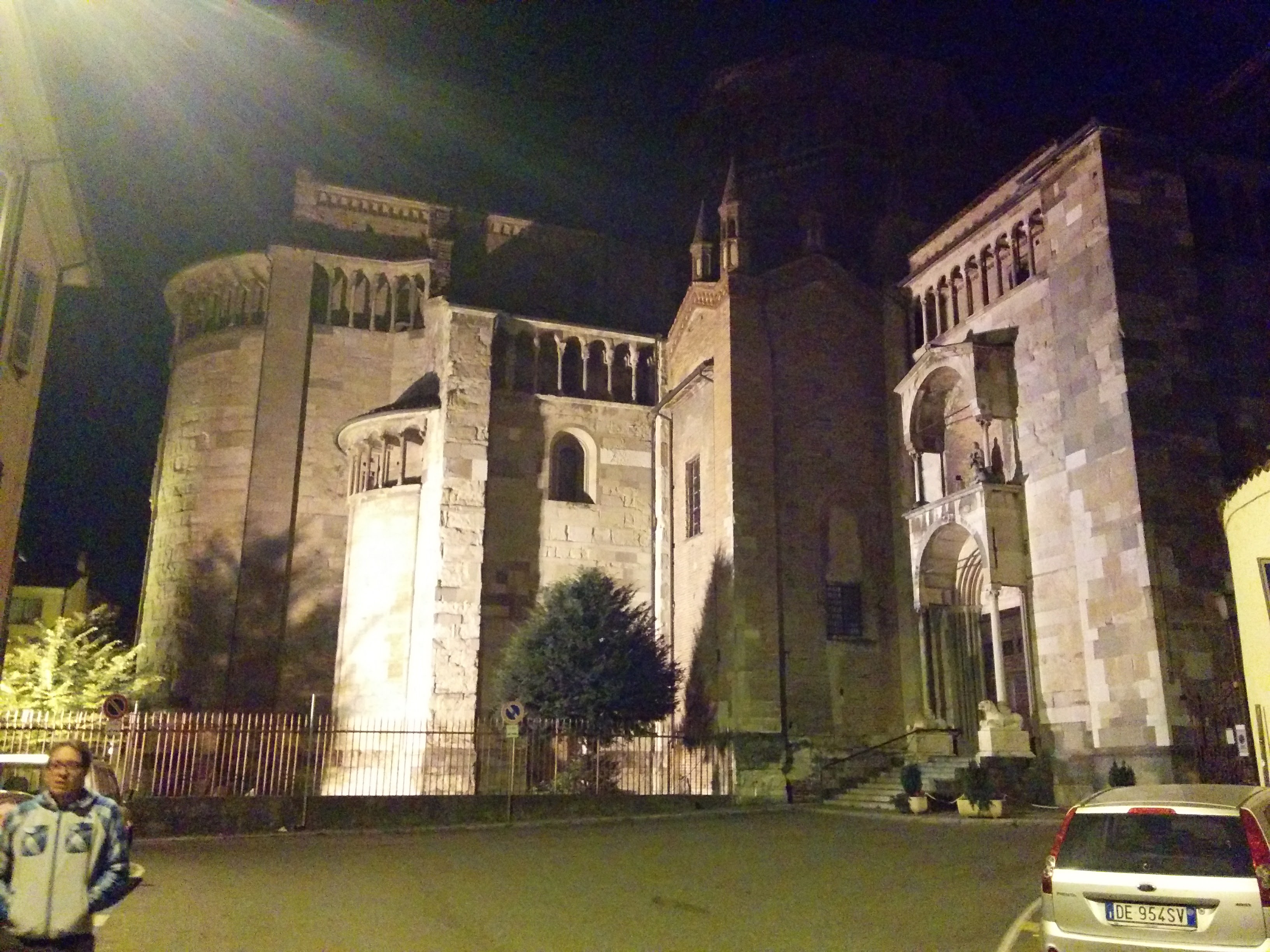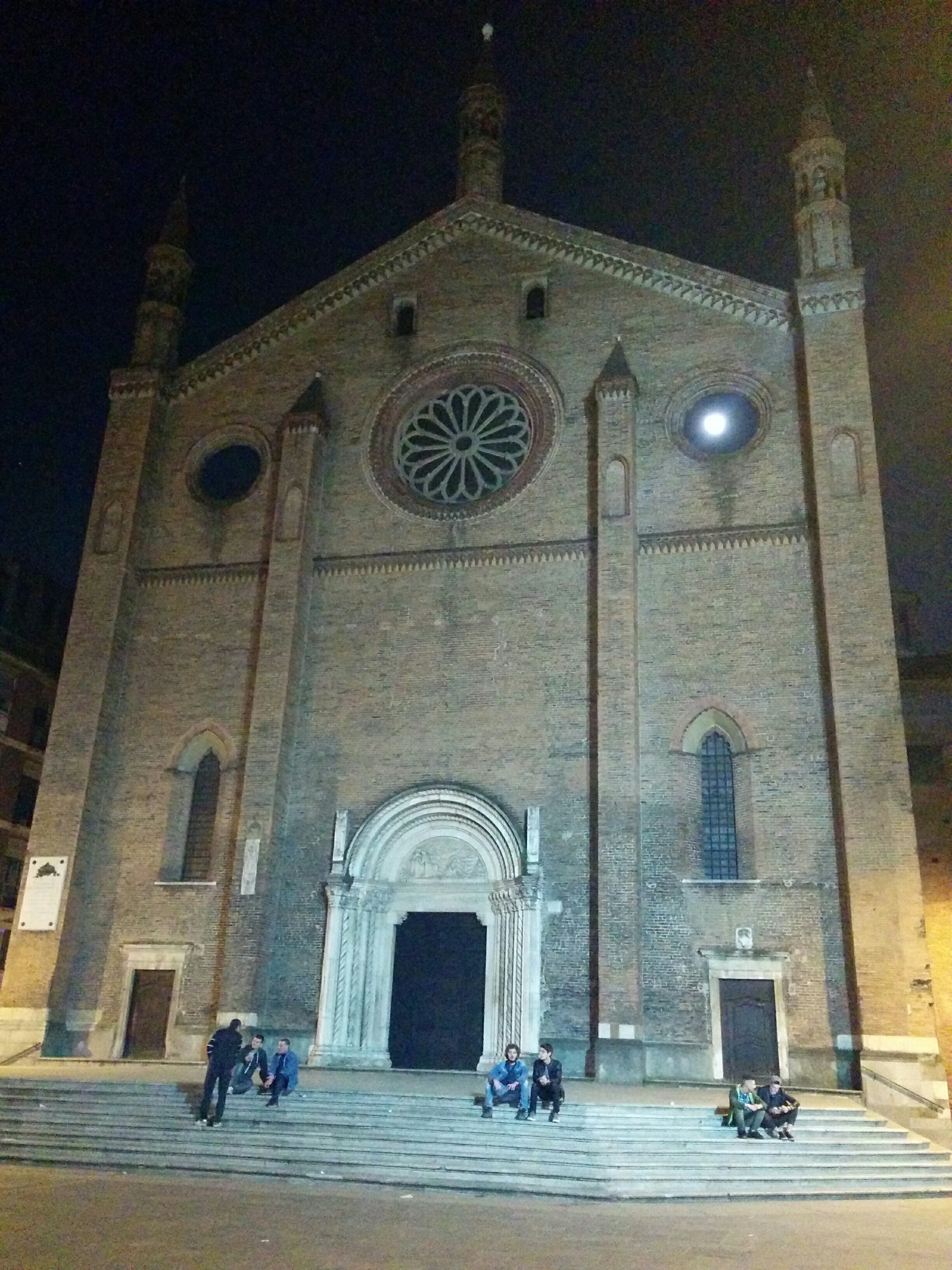 At night, it is not obvious that the Basilica of San Francesco has a phony façade, until Santiago pointed out that the two side rose windows actually don’t work; the full moon shone right through them, because they were outside the roof of the nave. Santiago’s landlord was an electrician, and responsible for the splendid illumination of the Duomo, right next to the apartment building.