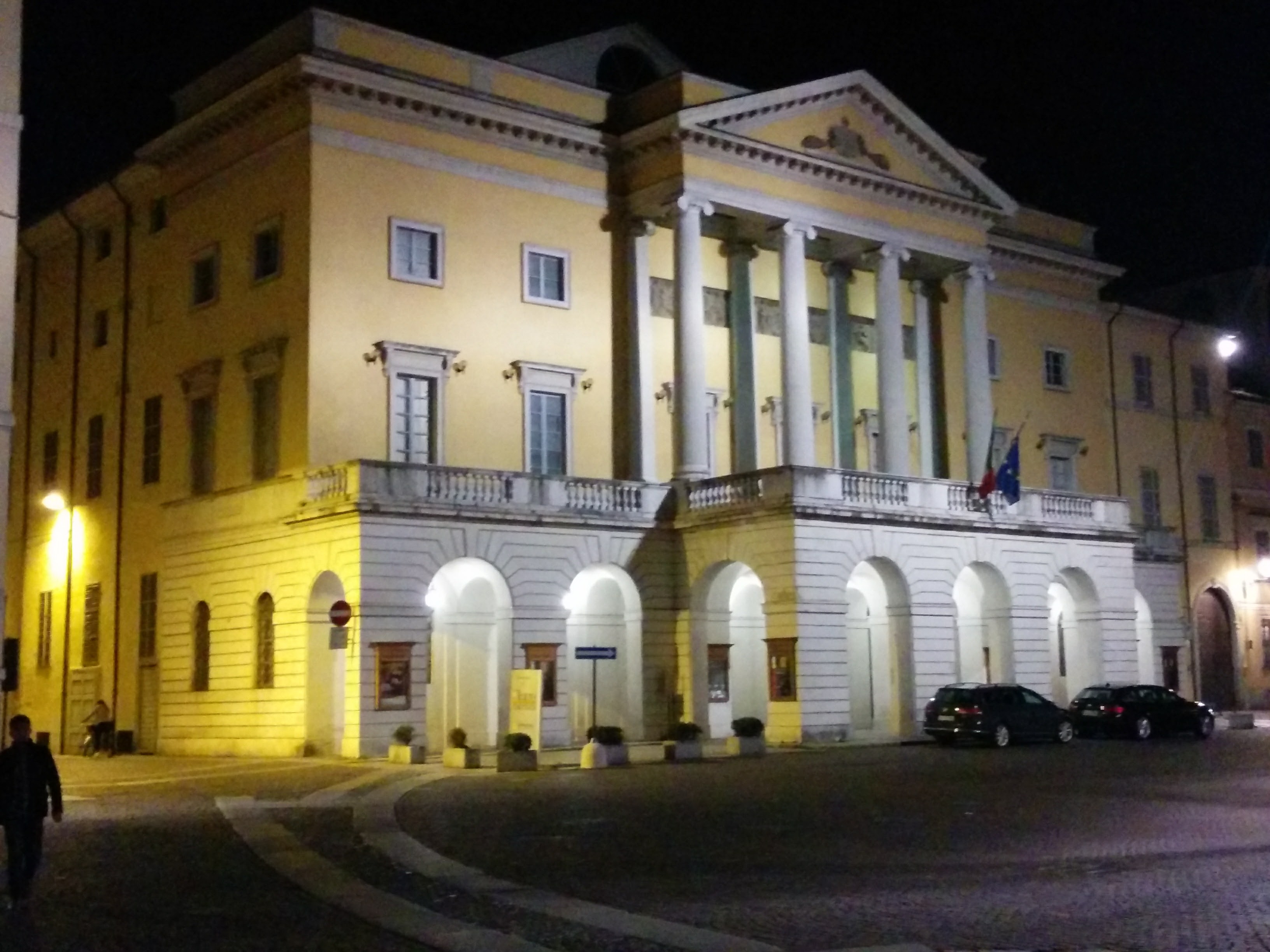 The first night we walked for ice cream after supper. With so much of the historic center converted to pedestrian use, Piacenza becomes a beautiful, quiet town after dark. The city theatre is a scale model of the La Scala opera house of Milano.