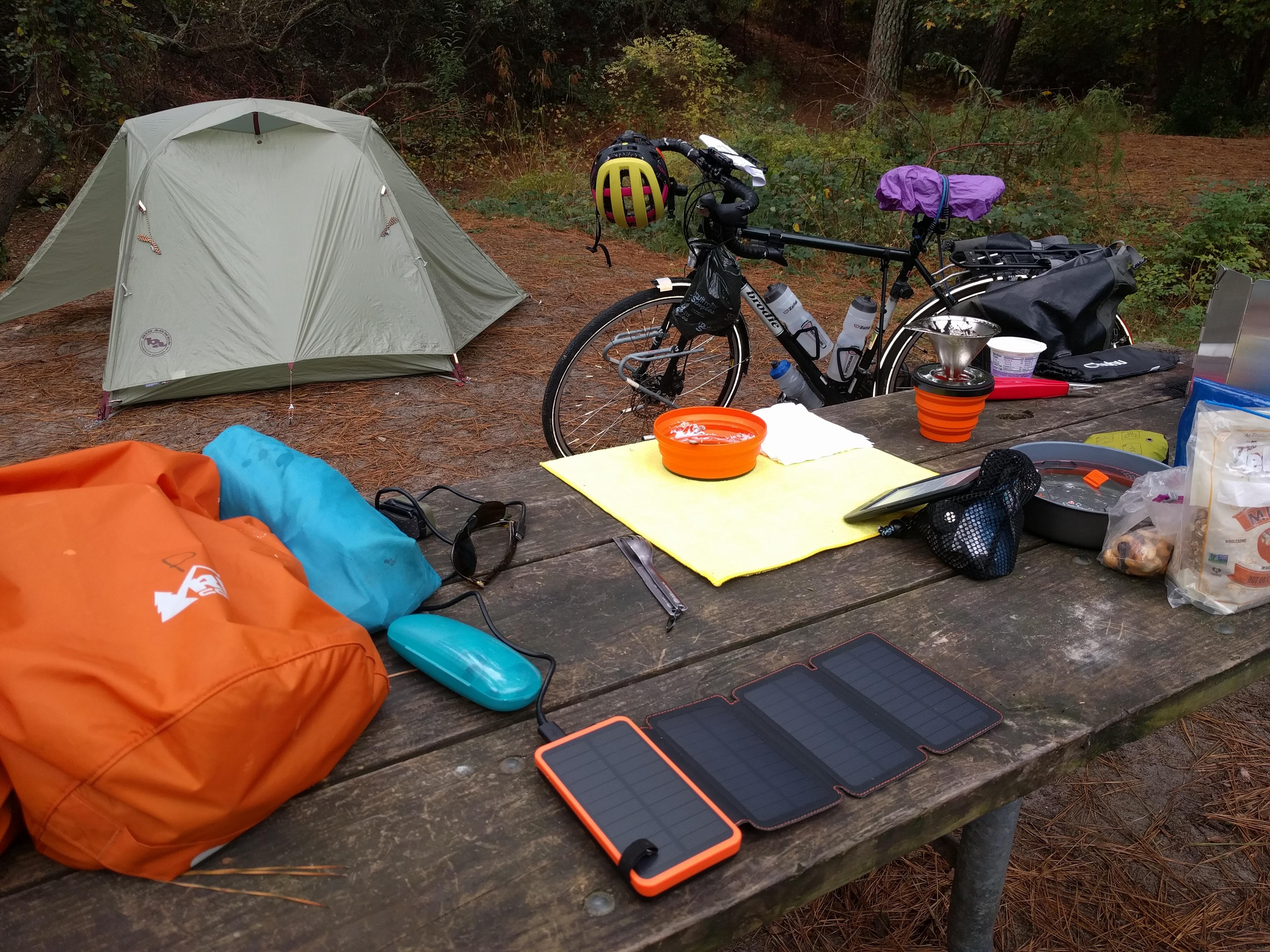 Tuesday morning, I gathered my camping gear and slid them into the panniers of my bicycle. For background, almost everything I ride with sits in two orange Sea-to-Summit 30L stuff sacks in the coat closet of my flat. What is not in those sacks is on a checklist taped to the back of the front door. Why, you might ask? Two reasons: