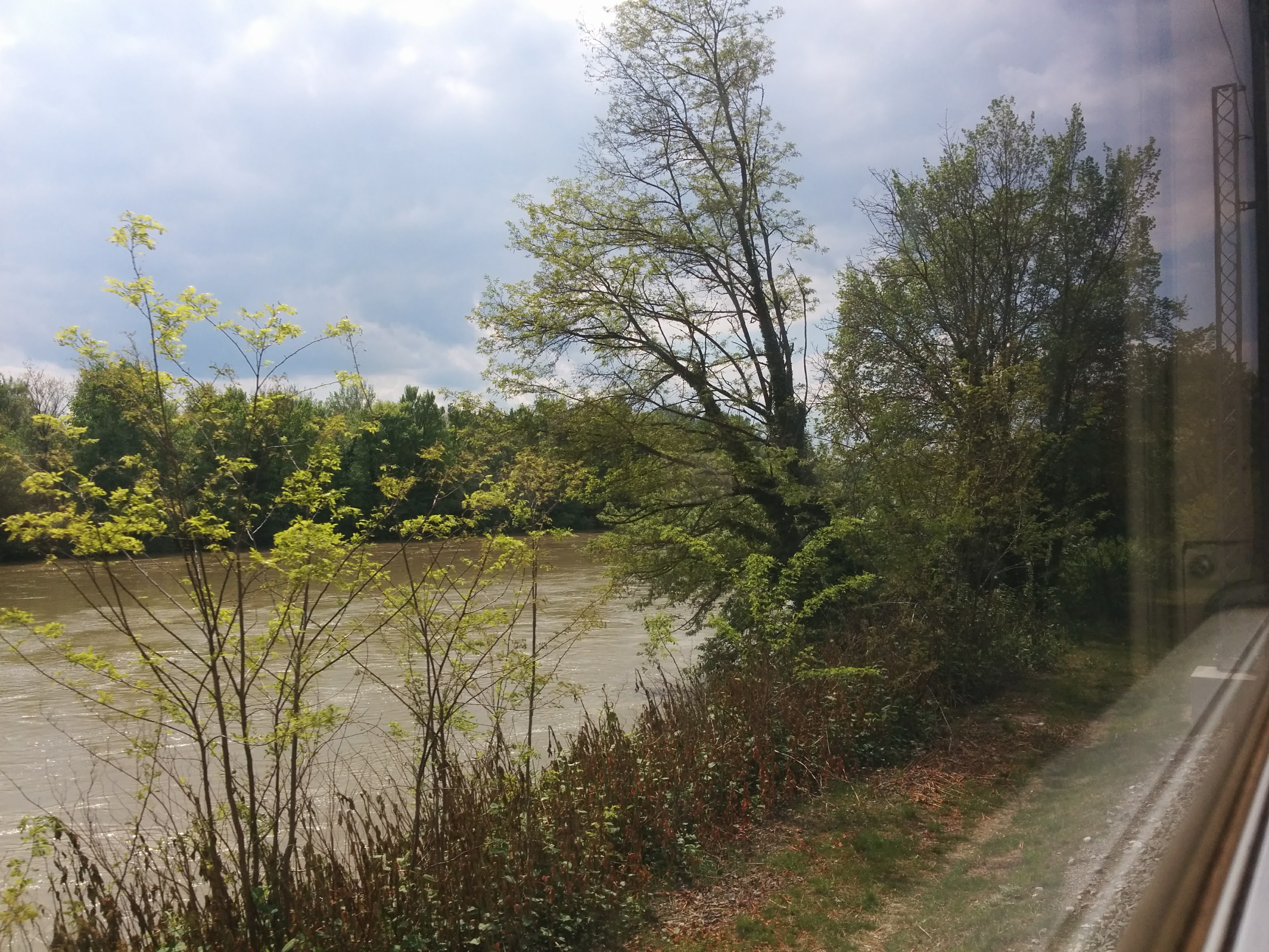 The train rolled through steep mountains covered with dense forests, following rushing rivers swollen by the recent rains. Although the last train from Jagersko was very hard to board (no ramp or stairs to the five-foot high bike compartment), the train personnel were very helpful. In spite of the inconvenience, I felt more appreciated as a train customer in Slovenia than I ever have in Italy.