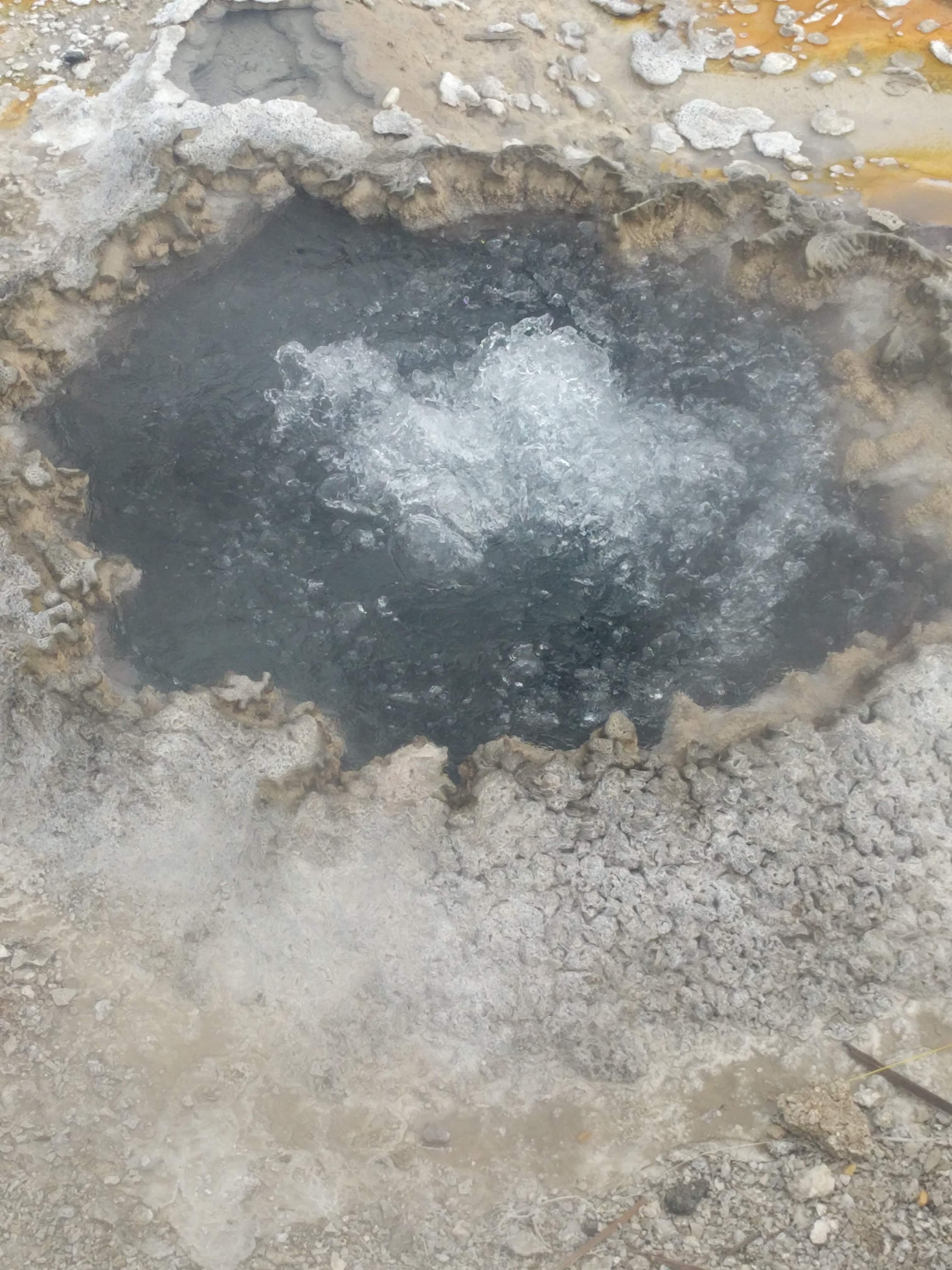 Monday could not have offered a greater contrast to the weather on Sunday: rainy all day and only 15°C (55°F). We walked past geysers and other thermal features for five hours, lunching on sandwiches from the convenience store.