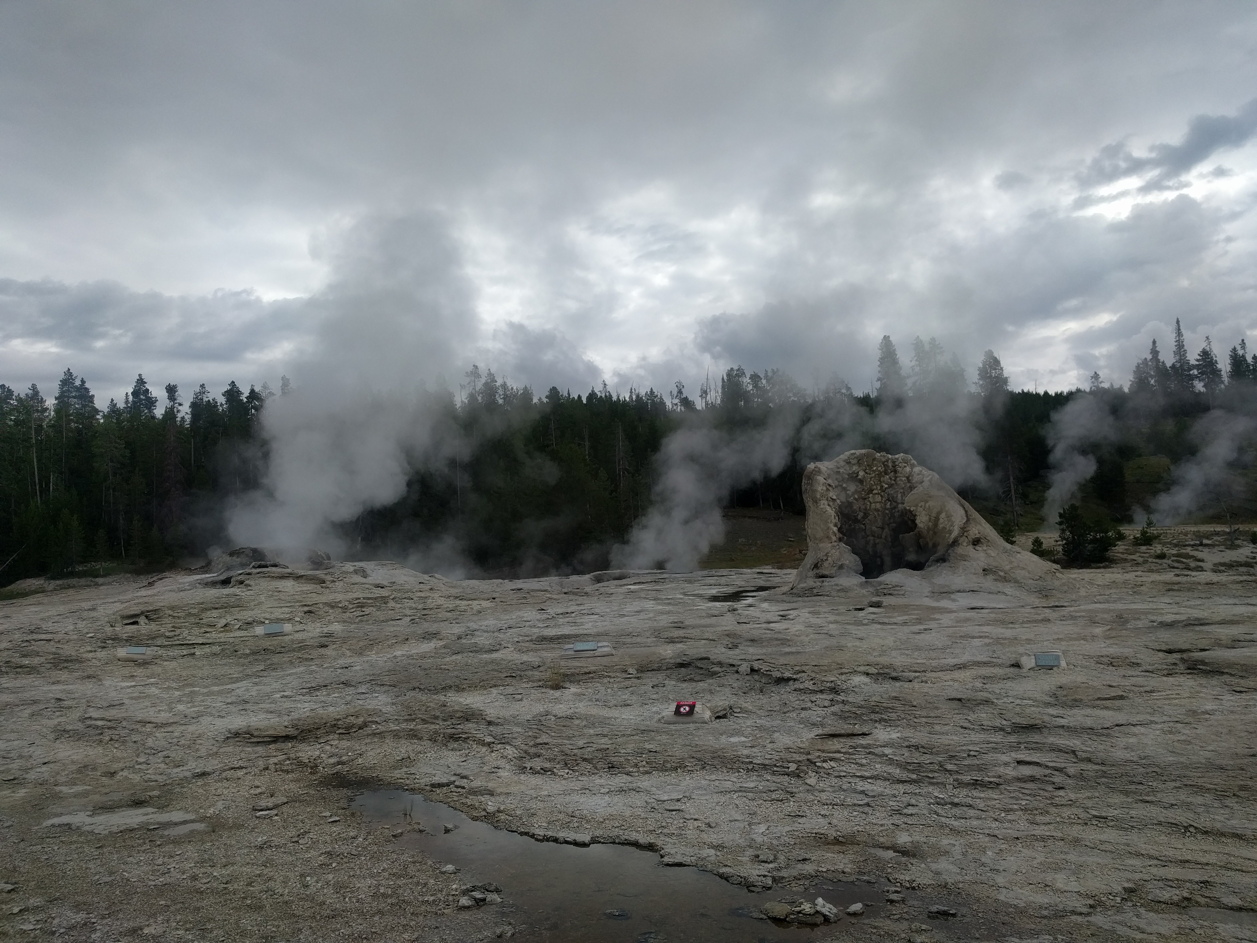 Independence Day dawned sunny with comfortable temperatures all day. We made the easy ride to the Old Faithful Inn in two hours and hung out. COVID protocols had affected all the operations at the most popular area of the Park, including closing all indoor dining and shuttering one of the hotels. The Obsidian Dining Room at the Snow Lodge was the only restaurant with a proper menu, and that was only by takeout. I ordered bison short ribs, something I had promised Cheryl for her birthday. We enjoyed dinner on the mezzanine of the Old Faithful Inn.