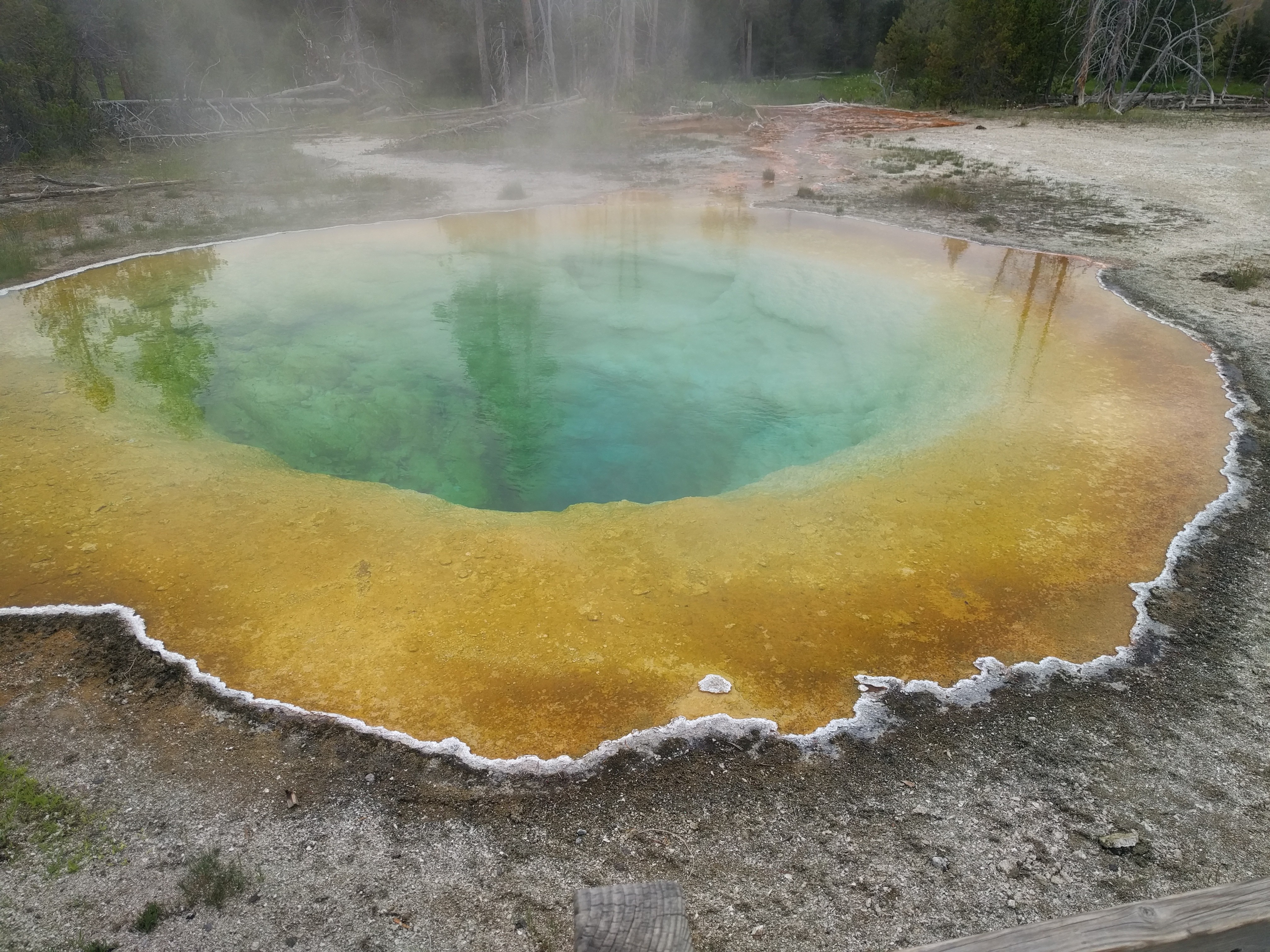 Supper in our campsite was a pleasant change from the madness in the facilities at Old Faithful. Jim Cochrane, with whom we had played leapfrog over the last few days, brightened the evening with intelligent and interesting conversation. After a sunny and pleasant day, we enjoyed a stunning, starry night sky.