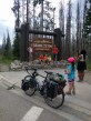 I blew downhill on the Rockefeller Parkway at 64.6 km/hr and met up with Cheryl at Colter Bay. We had dinner (pizza) in the restaurant and shared it with Jim Cochrane.