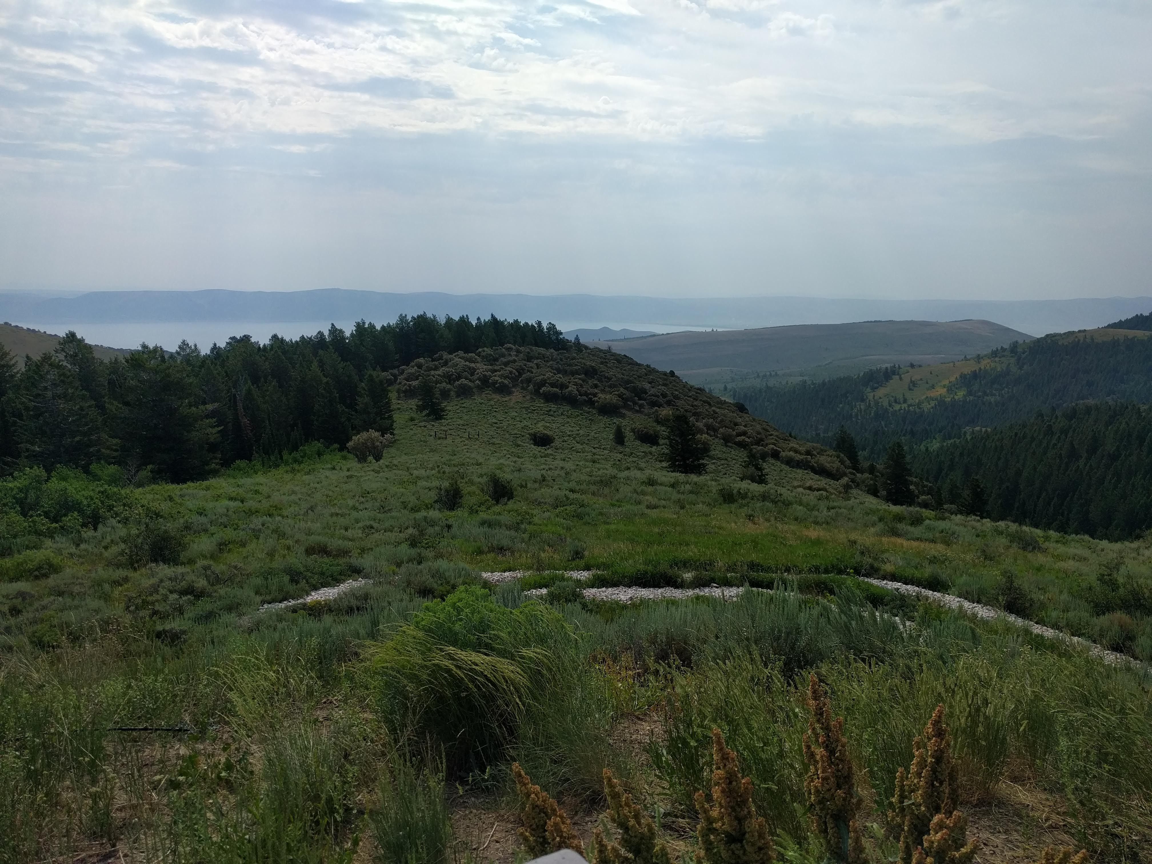 On the Logan Canyon Scenic Byway, we pedalled the sixteen kilometres to the summit overlooking Bear Lake. I ran out of air at 7400 ft (2256 m) and walked the last 400 m. After recovering while I took some pictures, I blew down the western side all the way into Logan.