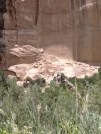 After Kodachrome, we drove to Utah’s Petrified Forest State Park (not to be confused with the Petrified Forest National Park in New Mexico). The petrified forest part was interesting, but not worth a special trip. On the other hand, the campground by the Rio Hollow Reservoir in the same park was nice. Exposed, but well-equipped. The picnic tables boasted metal roofs that sheltered the tables from the sun as well as the monsoon rains. We set up against the cliff wall, which proved to be a mistake. Late afternoon winds blew dust into the tent. It rained after we tucked in.