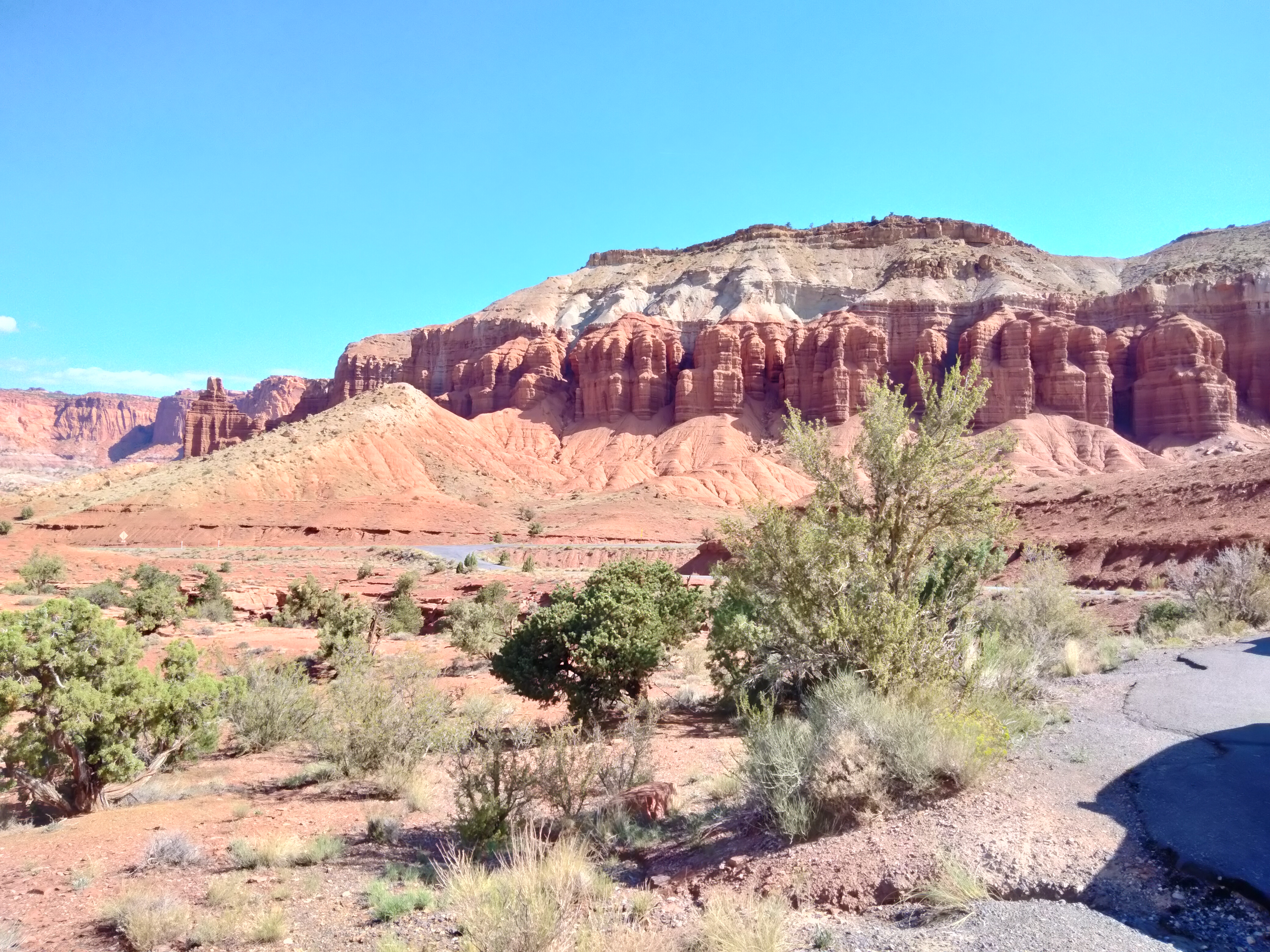 US-24 through the Capitol Reef National Park turned out to be as scenic as the more famous US-12 had been. The Capitol Reef got its name from the sheer cliffs that made it impassable (like a reef to ships). “Capitol” is an adjective, which John C. Fremont used to describe the reef. It has been a national park for more than fifty years. The National Park Service does a better job with its website for this park than many others: https://www.nps.gov/care/index.htm.