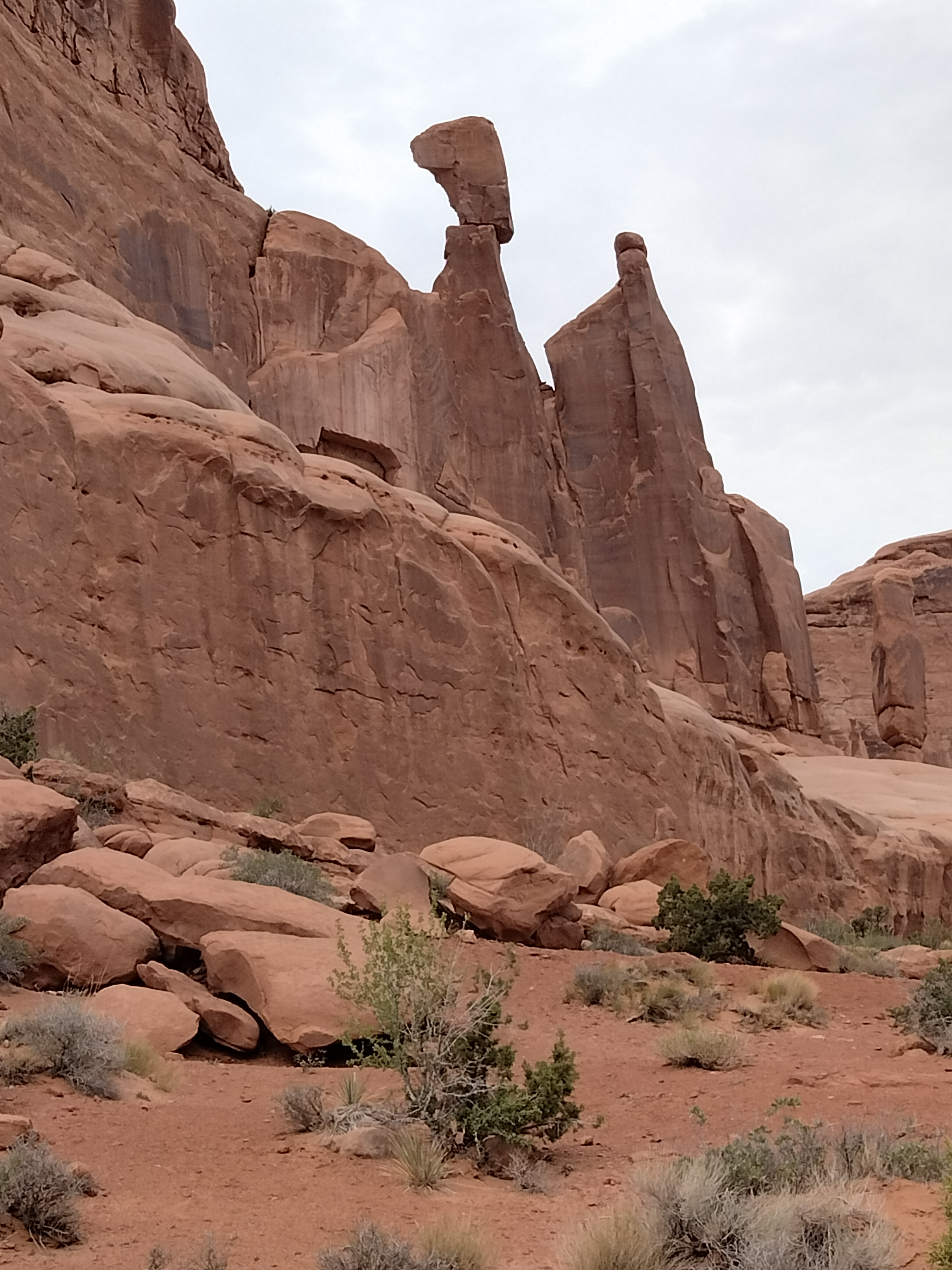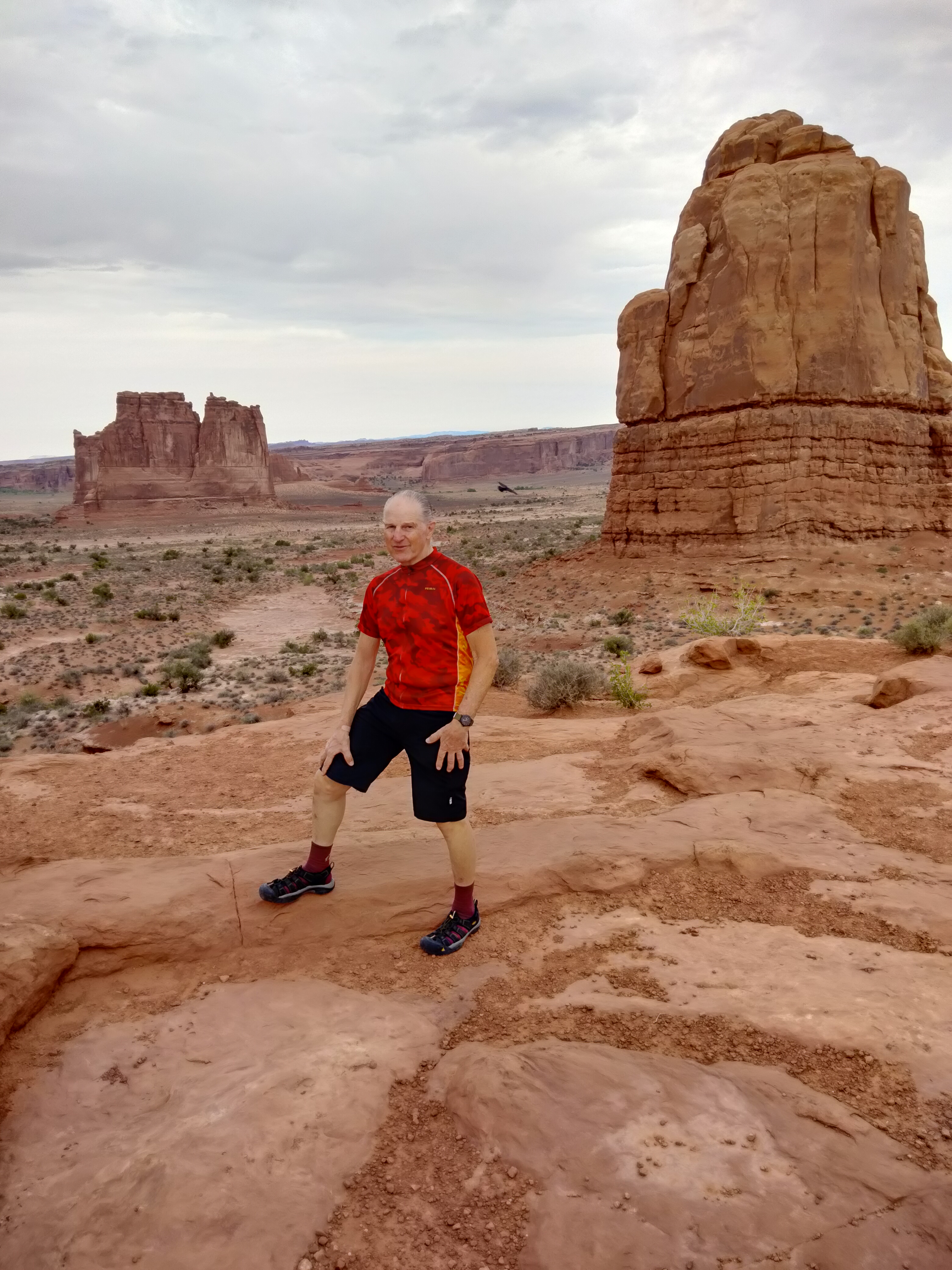 Saturday dawned overcast with spotty rain as we drove to Arches National Park. North of us, we could see the front moving along Interstate-70 eastbound. By 14:00, the sun came out, but the clouds persisted.