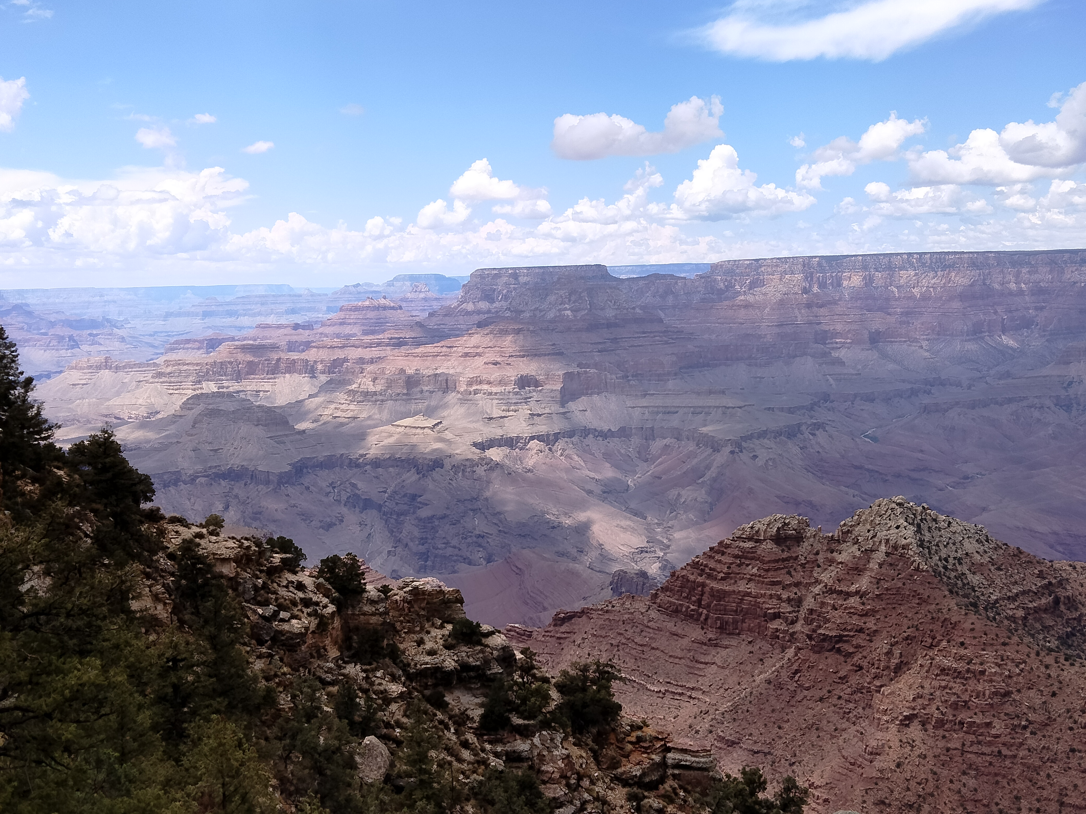 The rain blew through on Monday night. The 26th was a beautiful, sunny day. We drove to the South Rim of the Grand Canyon, stopping in Cameron on the way. We were now back on the original route we had planned before renting the van. We were lucky to find a campsite in the Mather Campground in Grand Canyon village.