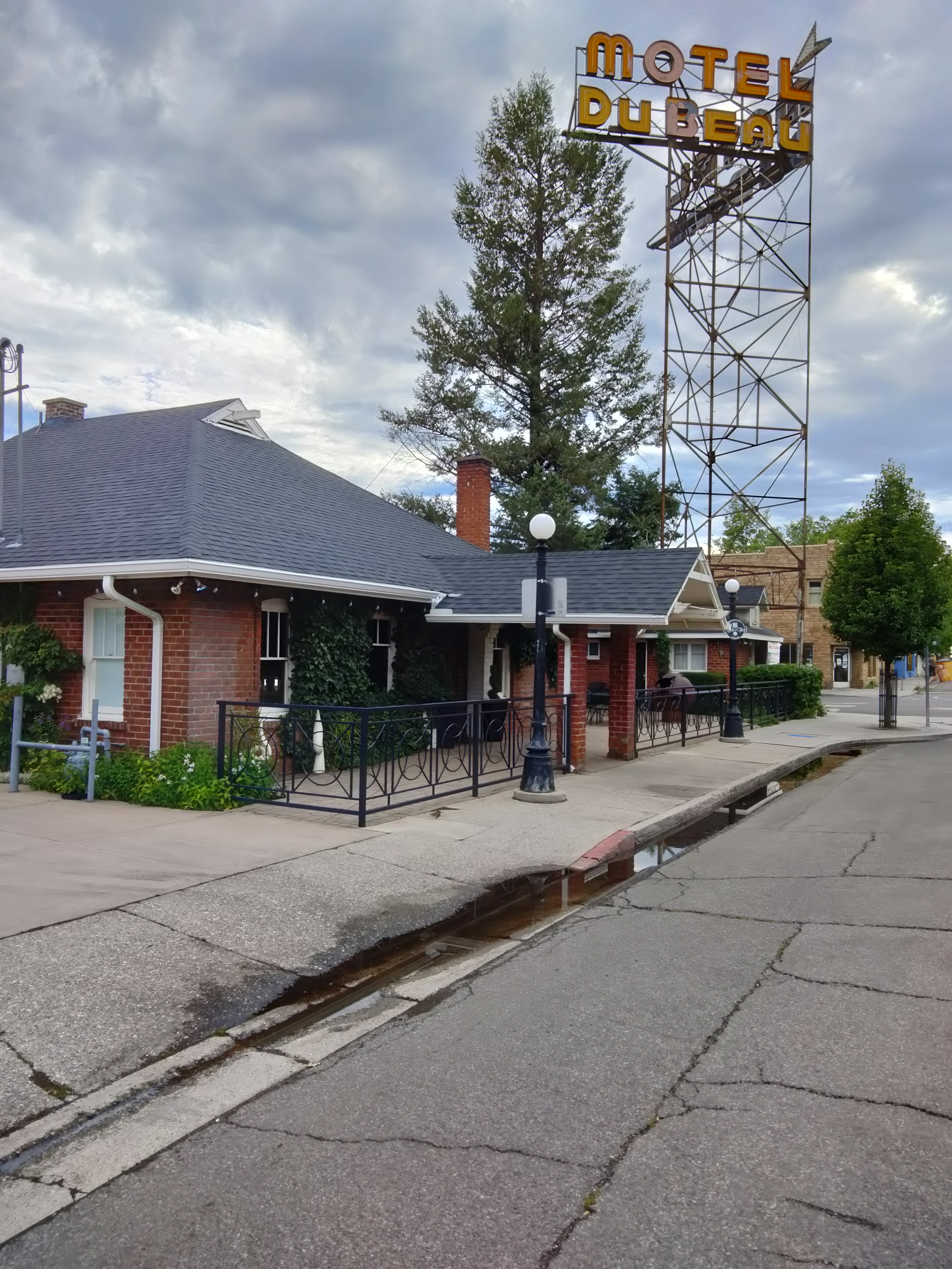 I stopped at the Starbucks in Tusayan to call Groome Transportation and learned that it costs only $49 to take their shuttle from Phoenix to the Flagstaff Amtrak station (with the bike). Then I called the Hertz (national number) to compare the drop-off fees for Phoenix and Flagstaff. To my surprise, Hertz had discontinued drop-off fees; I could leave the truck at any Hertz location. I booked a room at the Motel du Beau and headed south.