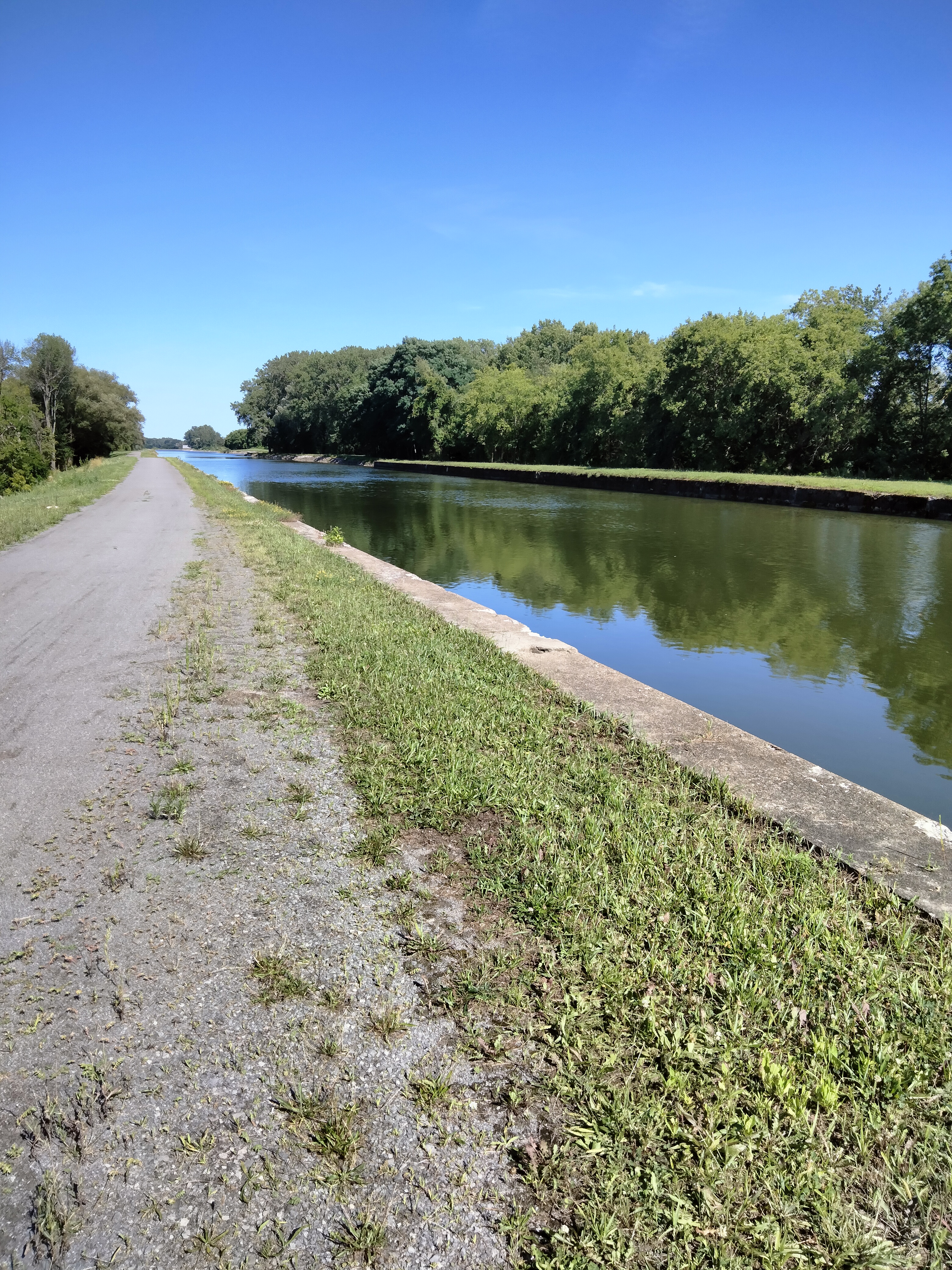 Riding a canal trail is not physically challenging if the surface is smooth and hard. We rolled quickly under tunnels of low-hanging trees and highway overpasses, never needing to strain up hills or brake on steep downhills. Still, it was dark when we reached Rochester, one hundred km from Lockport.