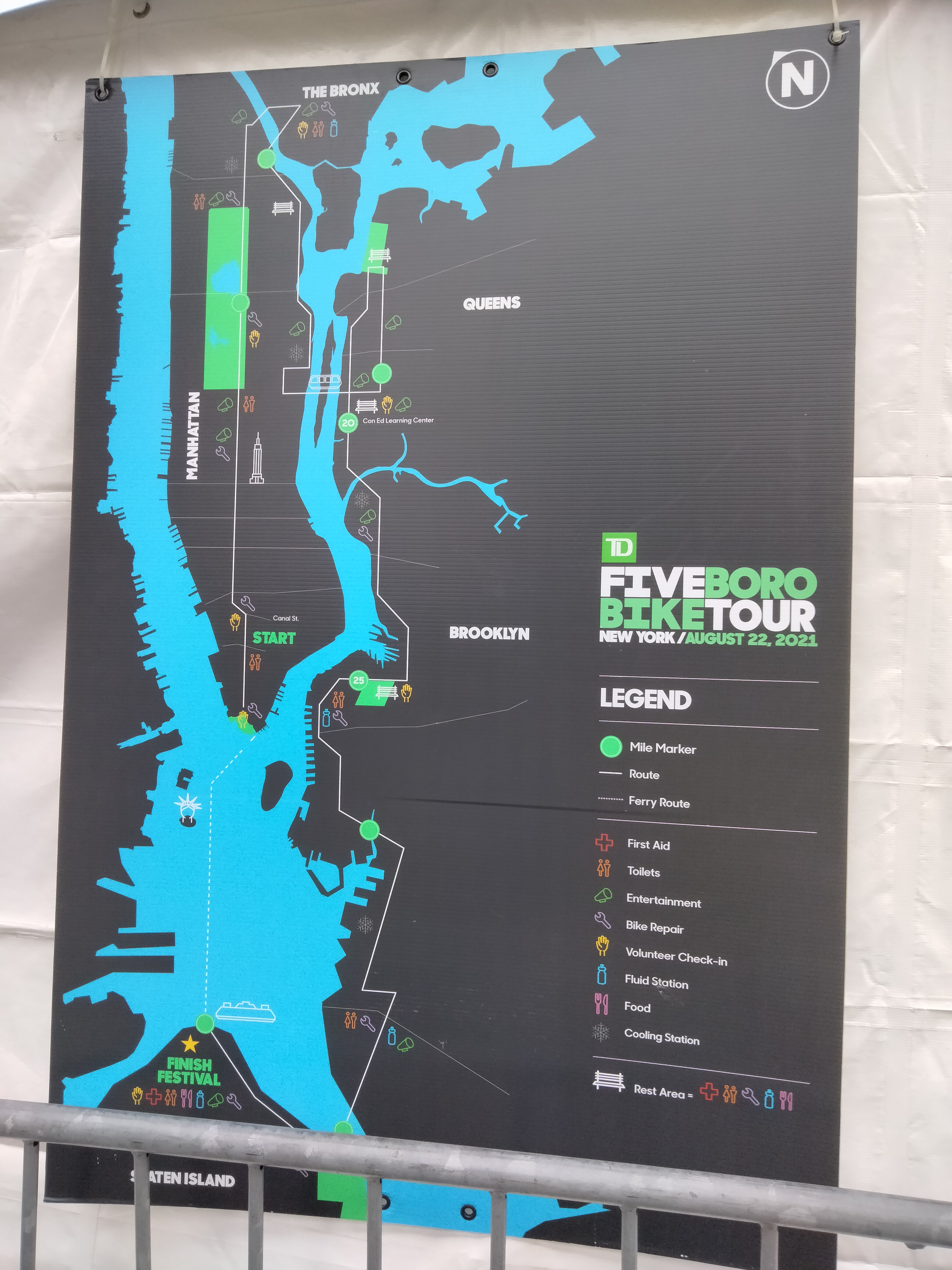 On Saturday, the 28th, we were riding around Battery Park when Cheryl noticed the banner for the TD Five Boro Bike Tour back in May. She looked it up on her phone and found that it had been postponed to the 22nd of August – then postponed again for Hurricane Henri! I booked two spots for the ride immediately.