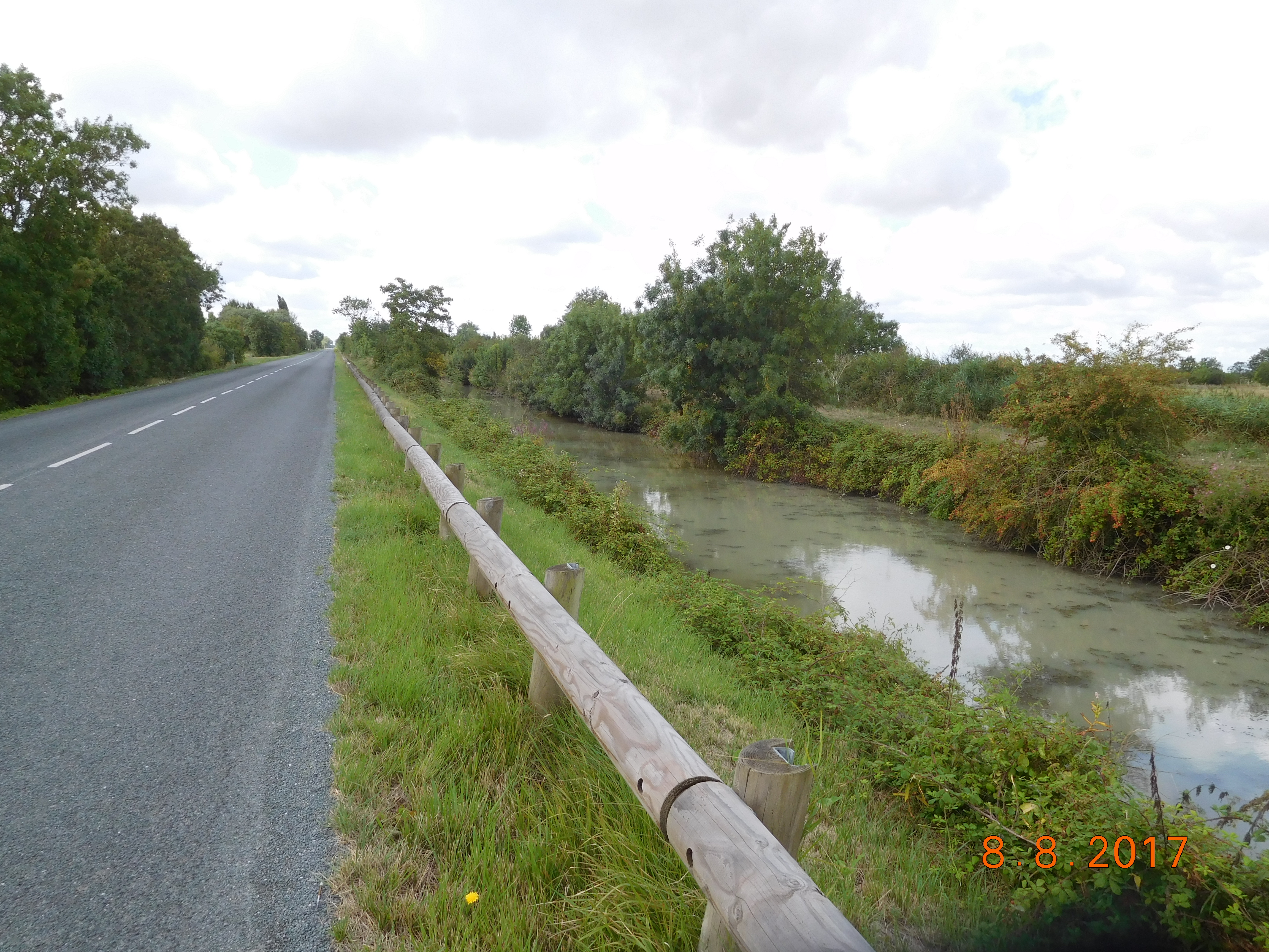 The weather improved as I made my way along the Charente River to the ferry that is providing service while the old transporter bridge is being restored (https://en.wikipedia.org/wiki/Rochefort-Martrou_Transporter_Bridge). By now, the terrain was changing from farmland into pine forest, and there were not as many ravines.