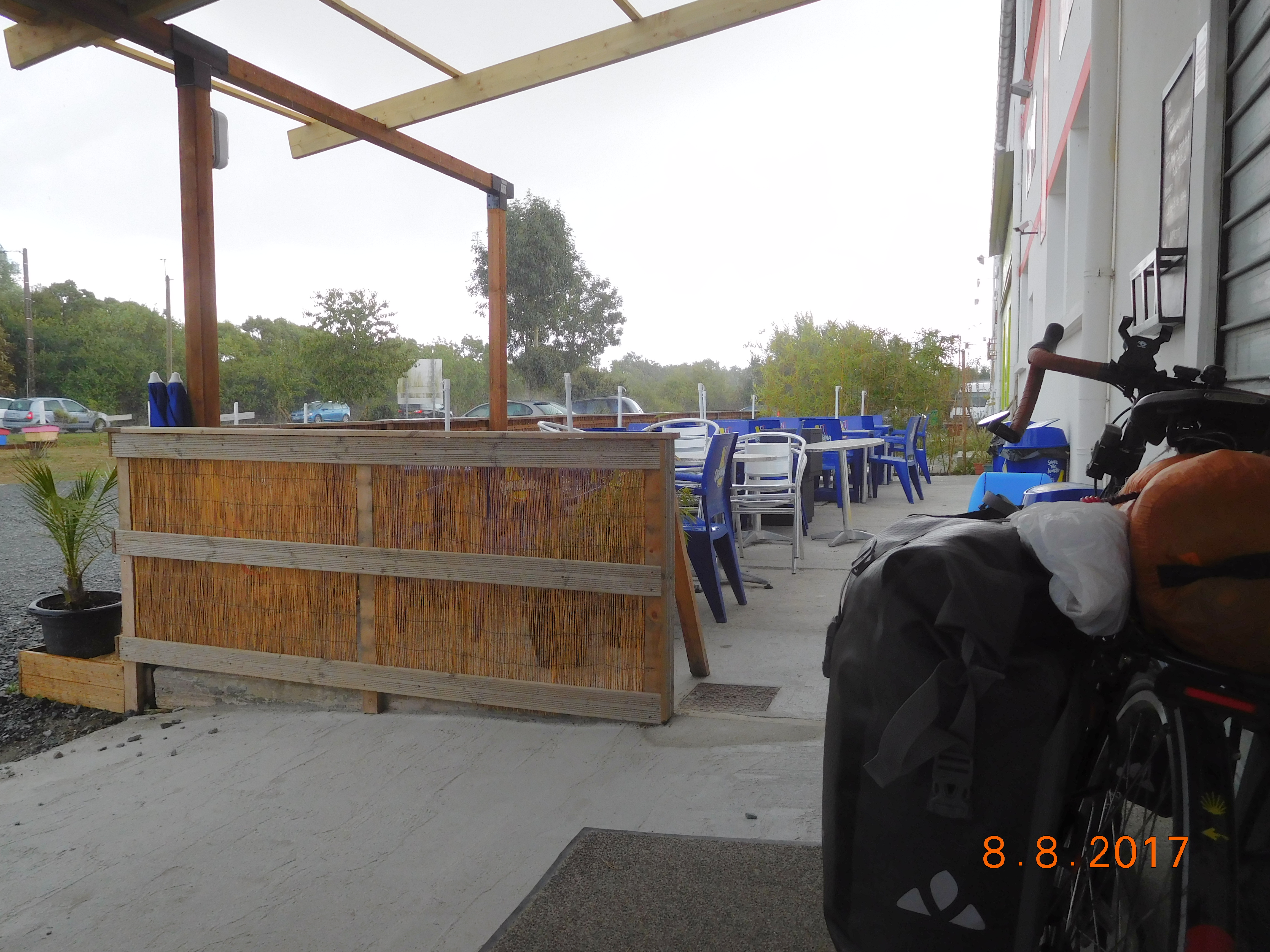 I left Saint-Mathurin with sunshine, a tailwind, and a downhill run to La Fault-sur-Mer. I got there so early that I decided not to take advantage of the Warmshowers offer to pitch my tent in the backyard. Instead, I pressed on toward La Rochelle. I found a gite (a whole house for me) for only EUR 35 on booking.com, and rode to Nalliers. When I got there, I found that there was a glitch. The place was occupied all week already. The operators were mortified, and took me into their home. While Daniel called booking.com to find out why the listing did not show “sold out” but made it available, I settled in and took a shower. Corinne ran my laundry (I had been planning on using the machine in the gite). She also had a dryer, so everything would be ready to wear in the morning. Then they invited me to dinner. As we ate, a massive thunderstorm rolled over the area. We checked the weather map, and saw that the coast was being battered all the way to Bordeaux. Lucky for me that I was not in my tent in a backyard! To this day, Corinne and Daniel are friends on Facebook and keep in touch.