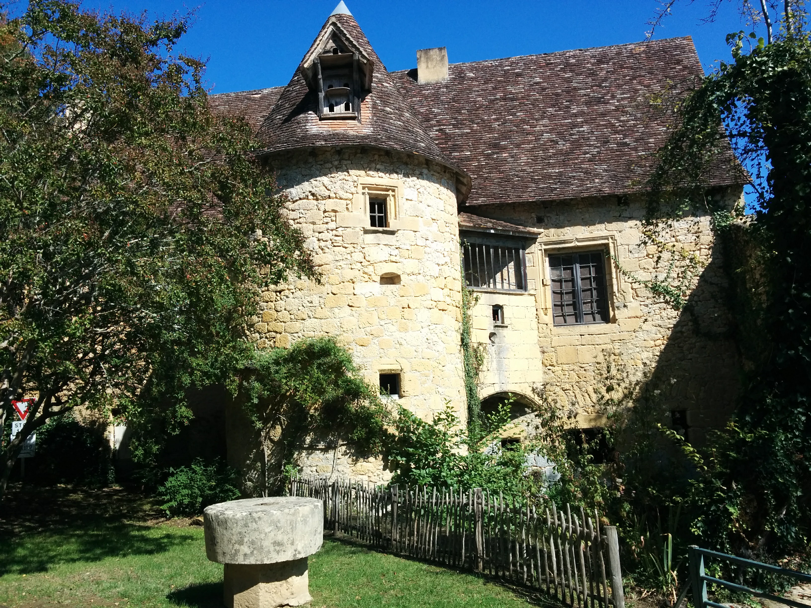 This was part of Protestant France during and after the Wars of Religion (1562–1598), also known as the Huguenot wars. From Monbazillac, we made our way downhill to the city of Bergerac, and checked into the La Flambée hotel. Set in an old manor, the hotel featured its own restaurant and put us conveniently on the road the next day.
