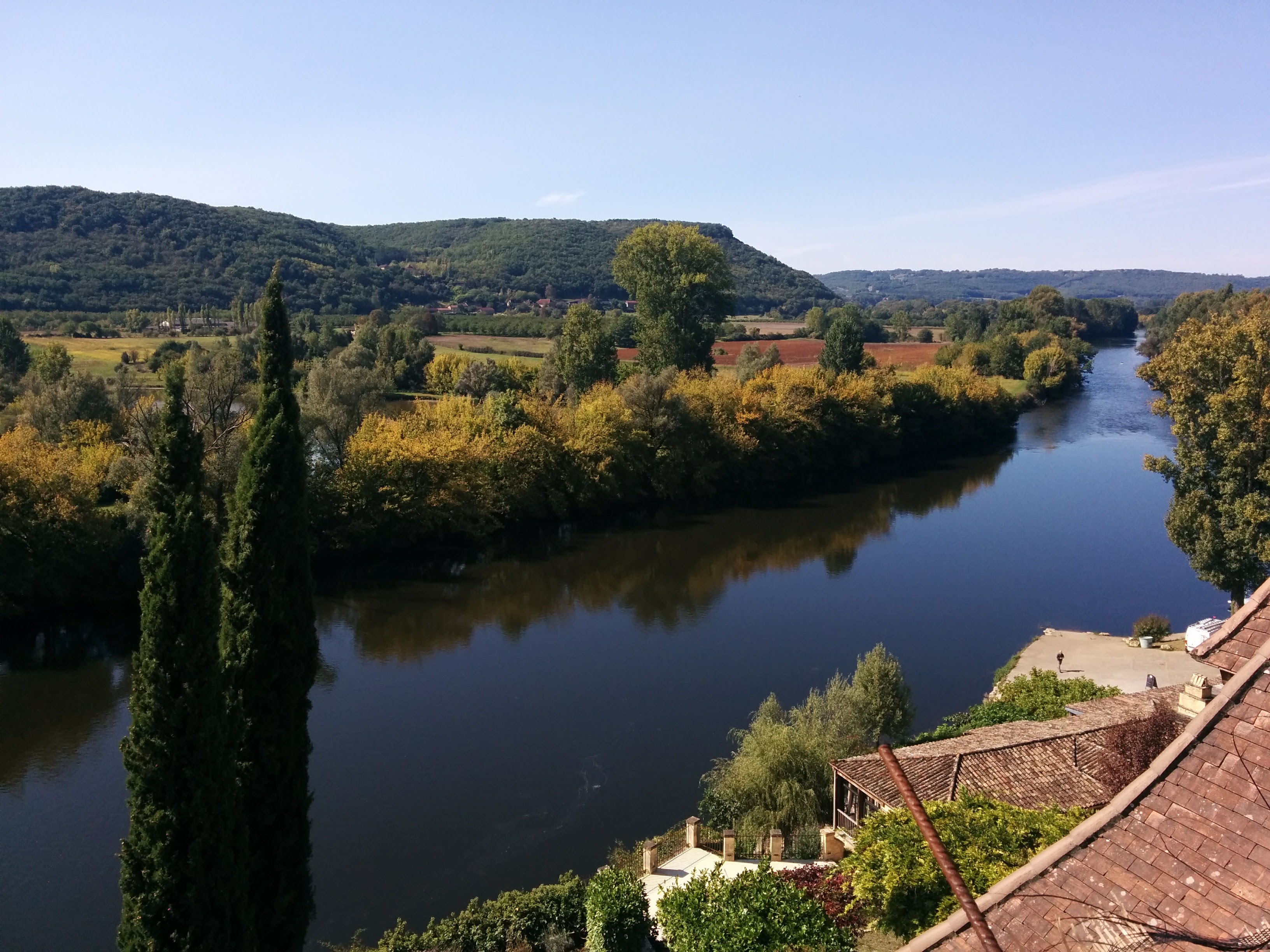 On the first day of autumn, we rolled downhill back to the Dordogne River, stopping at the castle of Montfort, another classic Disney-looking chateau. Then we followed the river upstream, leaving the Department of Dordogne, and returning to the Department of Lot.