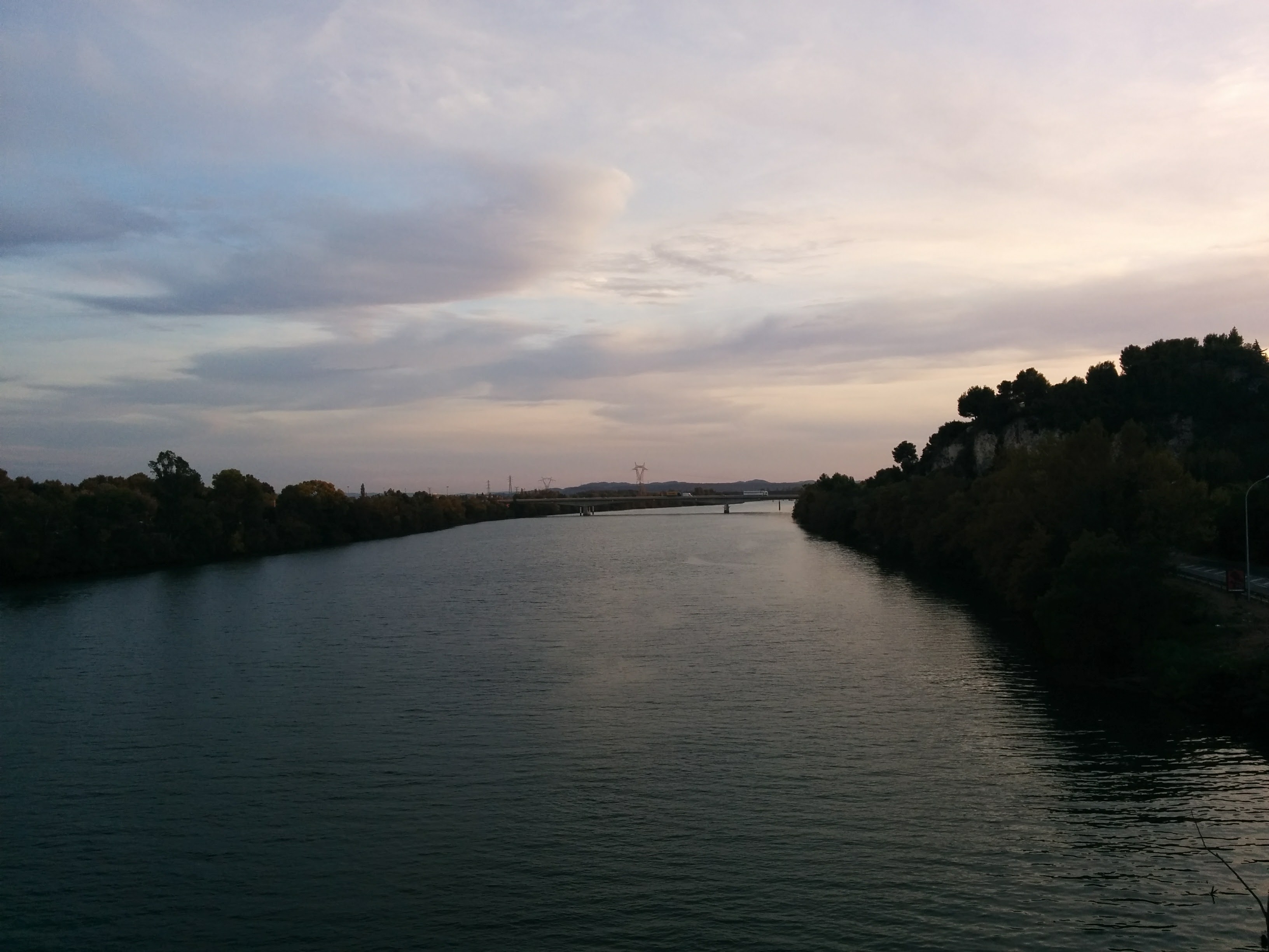 It is not a bridge, but a three-tier aqueduct, the largest Roman aqueduct in Europe. It carried water 50 km from a spring in Uzès to Nîmes. One of the best-preserved aqueducts, it is also a World Heritage Site. We made our way across it, then down to the Rhône River.