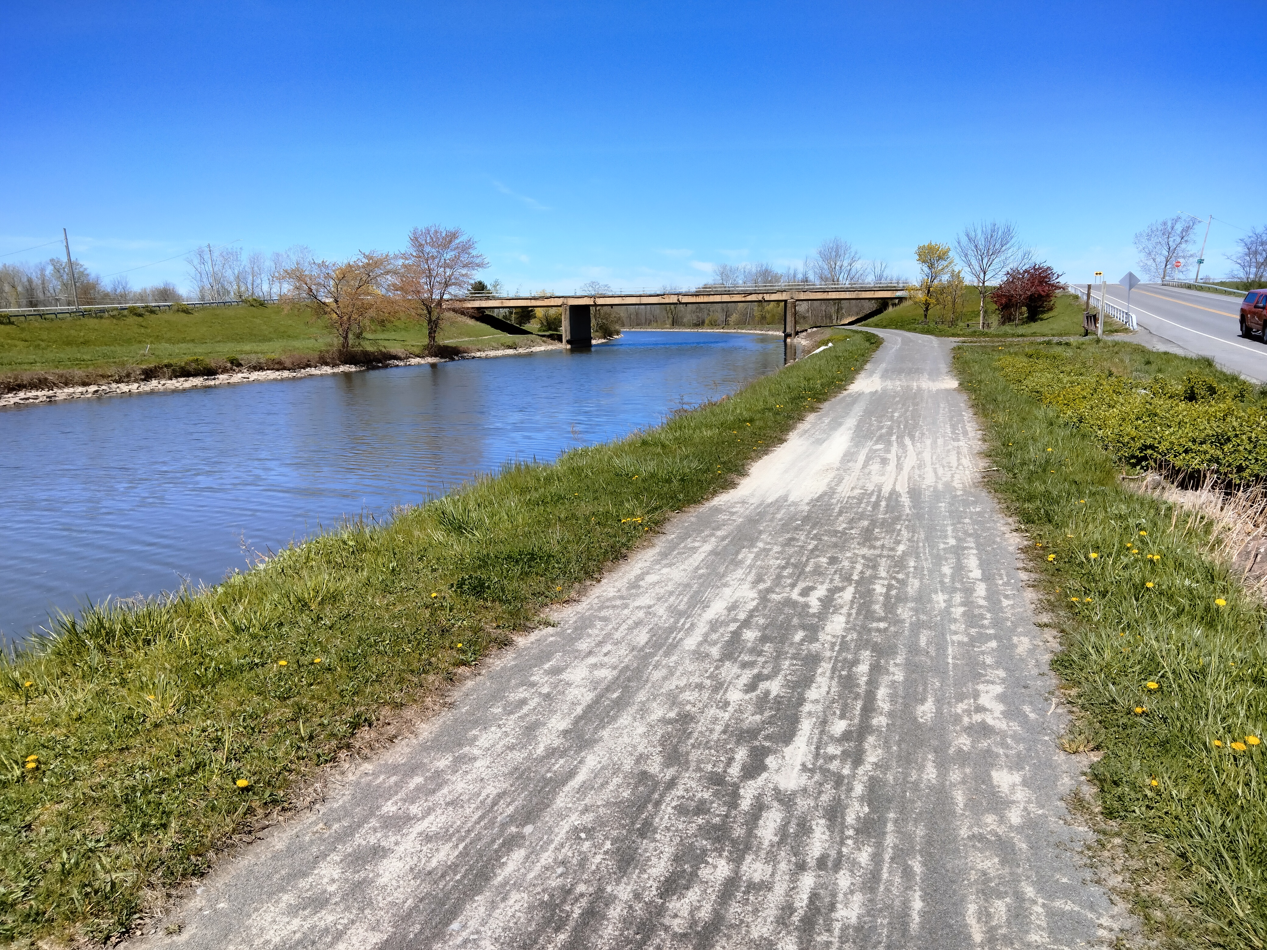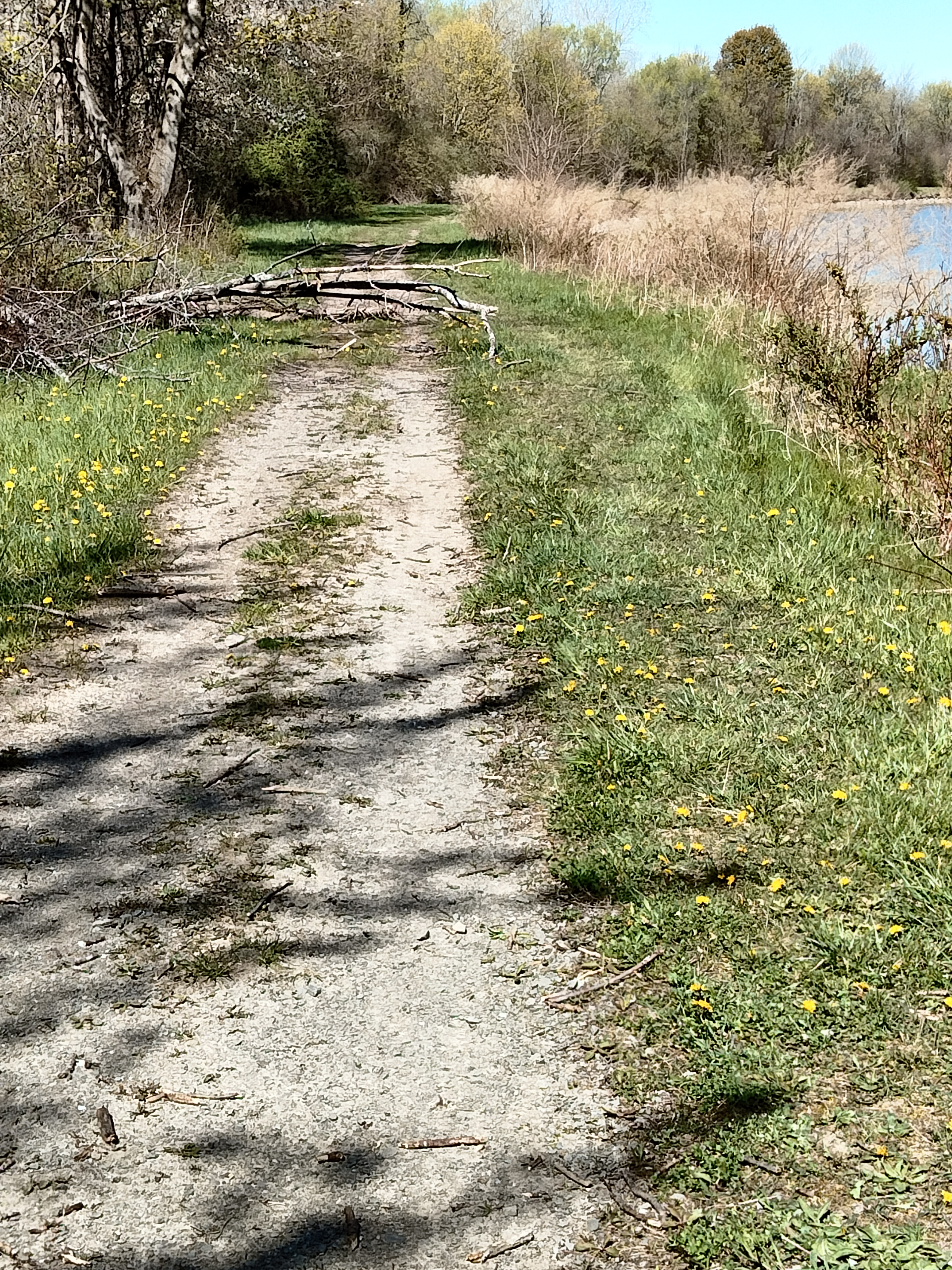 The day stayed very pleasant, sunny but cool. I learned quickly to find the better-maintained side of the canal, by encountering fallen trees on the “wrong” side.