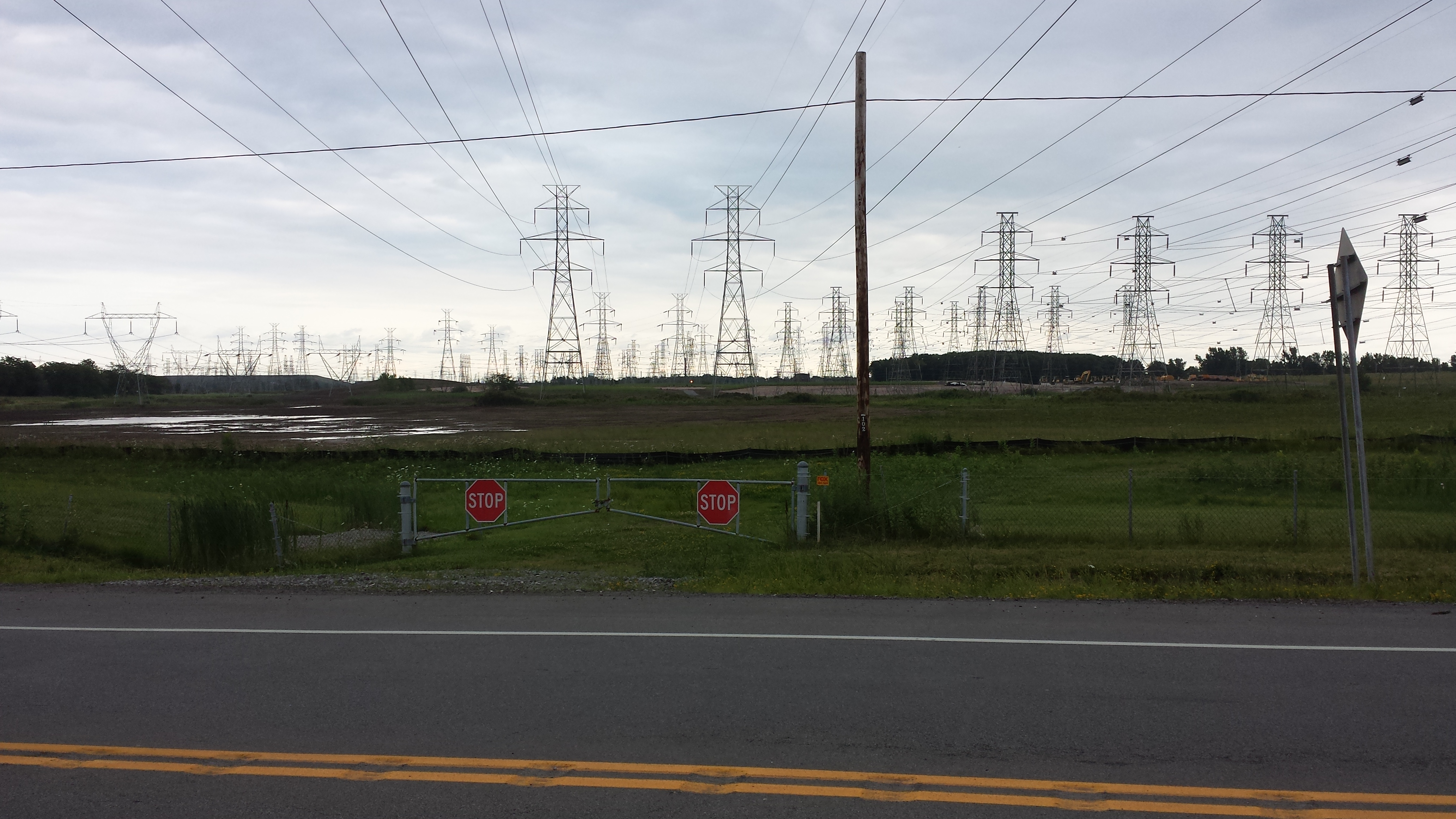 As I approached Niagara Falls, the fields on either side featured an ever-thicker proliferation of towers carrying electric power from Canada to the United States. I made my way through town, not pausing before riding across the Rainbow Bridge into Ontario.