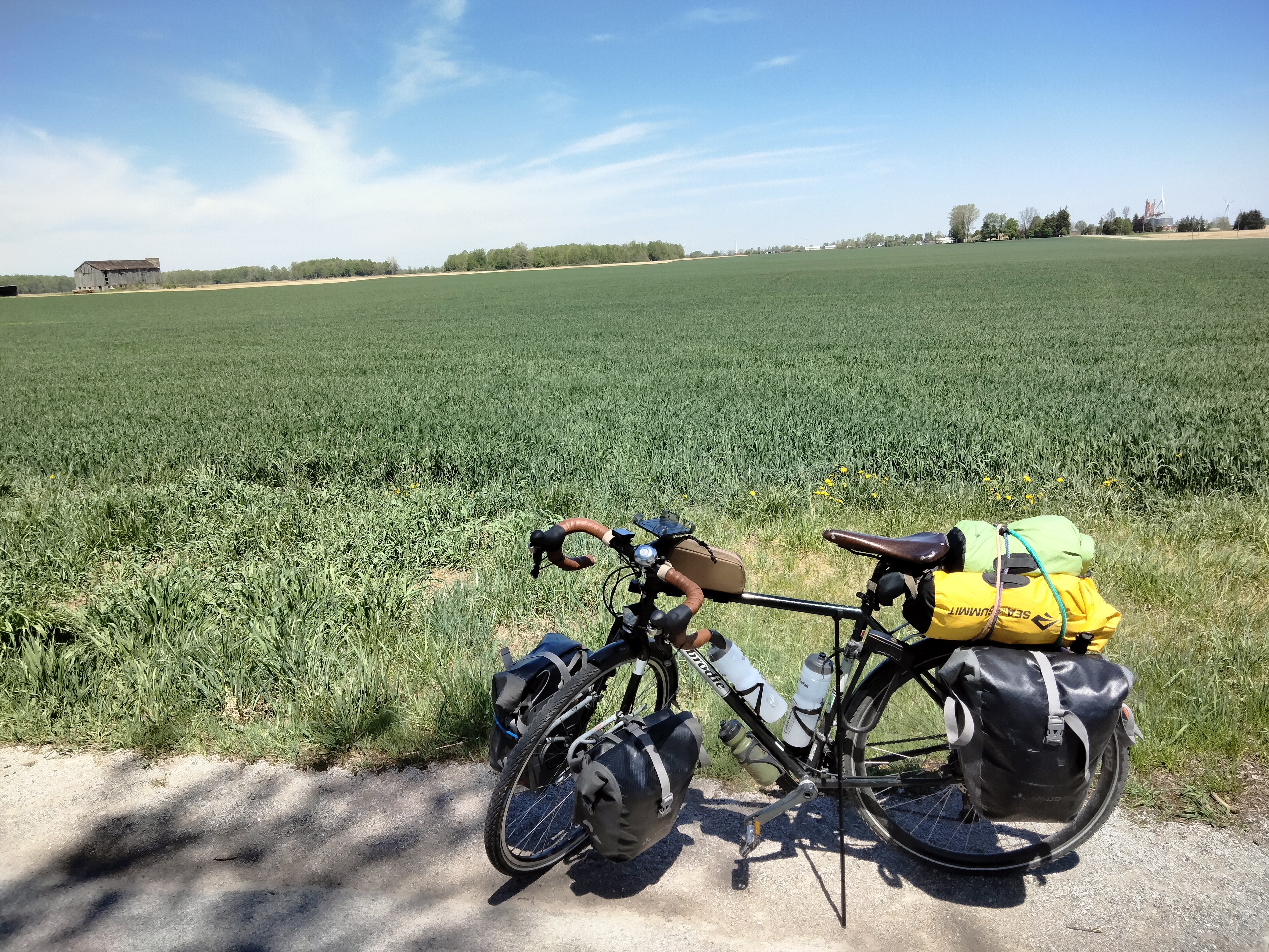 There is not much to say about this part of Ontario except that the land is flat and fertile. The fields were rich with all sorts of crops and stretched to the horizon as I rode. I spent the Thursday night at the Days Inn in Brantford. The headwinds were mercifully mild, so I moved quickly.